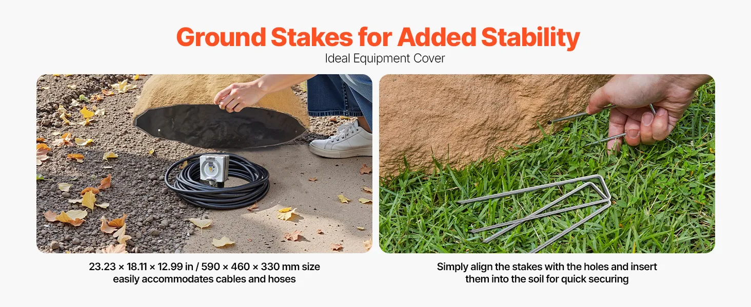 Included ground stakes ensure the facilities can be firmly covered, avoiding shifting even in windy weather. This landscape rock cover fits tightly against the ground to shield manholes, pipelines, and other facilities comprehensively.