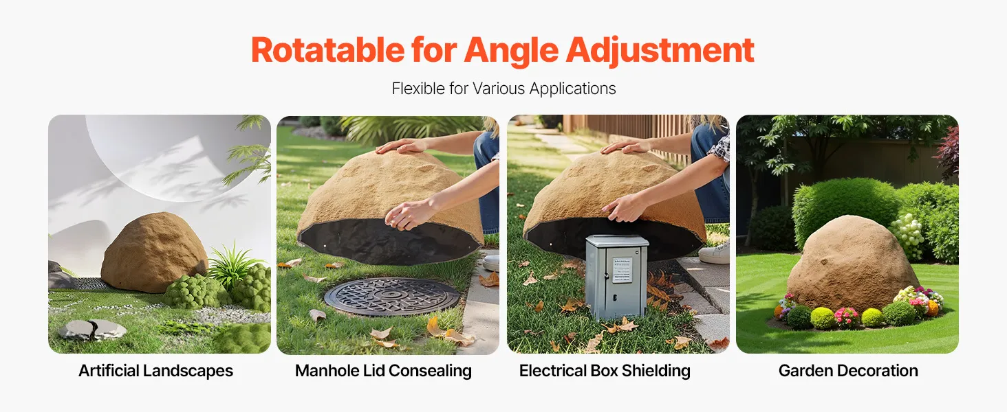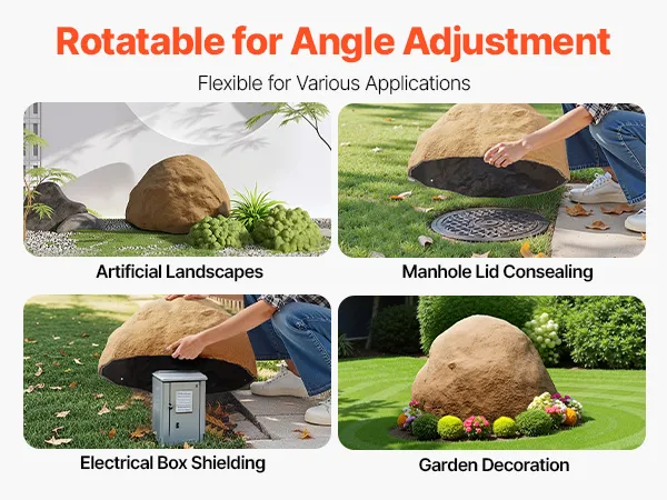 The angle can be flexibly rotated and adjusted according to your needs. This landscape rock cover is ideal for manhole lid concealing, small pumps, electrical boxes shielding, and garden decoration. Multi-purpose design make it practical and stylish.