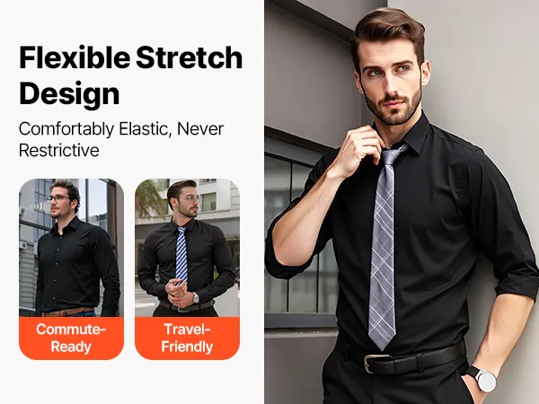With a polyester-spandex blend, this men button up shirt is wrinkle-free and maintains its crisp shape. Just shake it out after washing—no ironing needed—making it a time-saving choice for business trips, commuting, or travel.