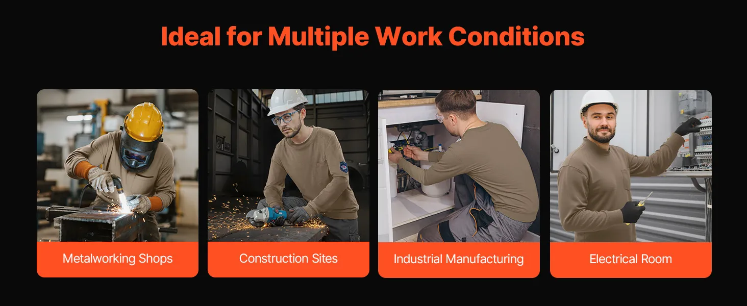 Ideal for metalworking shops, construction sites, manufacturing facilities, and electrical distribution rooms—anywhere sparks or arc hazards are present. Designed for welders, electricians, linemen, and more.