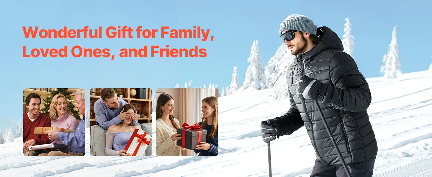 Available in men's and women's sizes, this soft shell heat jacket is suitable for hiking, camping, skiing, or as a thoughtful winter present for family and friends.