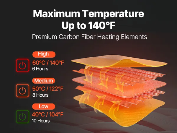 • Multi-Zone Heating: This heated jacket features carbon fiber elements across 5 core zones (arms, abdomen, back), delivering fast warmth with 3 adjustable heat settings (low/medium/high),104-140℉, ideal for cold winter days