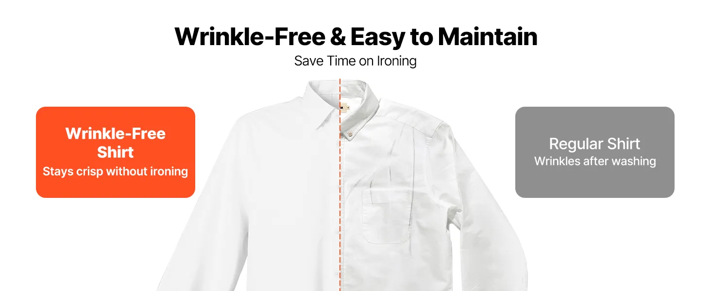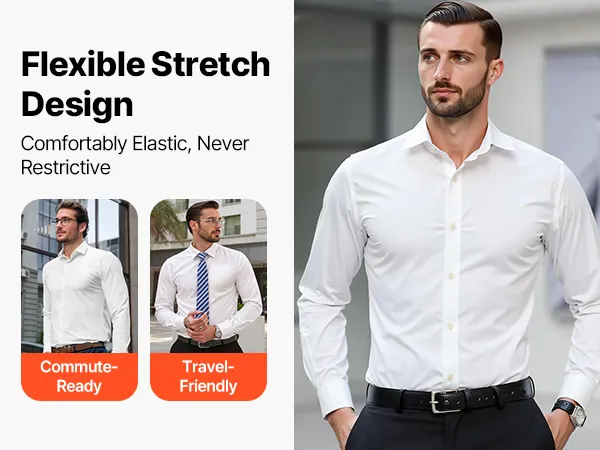 With a polyester-spandex blend, this men button up shirt is wrinkle-free and maintains its crisp shape. Just shake it out after washing—no ironing needed—making it a time-saving choice for business trips, commuting, or travel.
