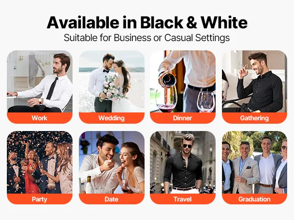 This shirt suits a wide range of occasions—from meetings to dinners. Pair the black shirt with a blazer for a professional look, or wear the white one solo with jeans for a clean, smart casual vibe. It’s one of those button down shirts you’ll reach for again and again.