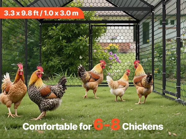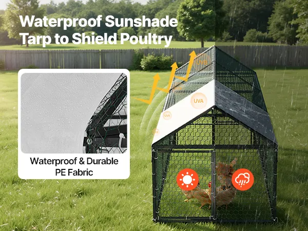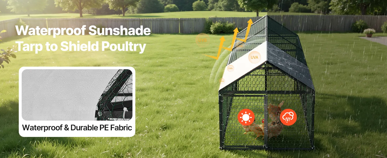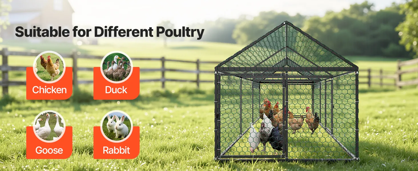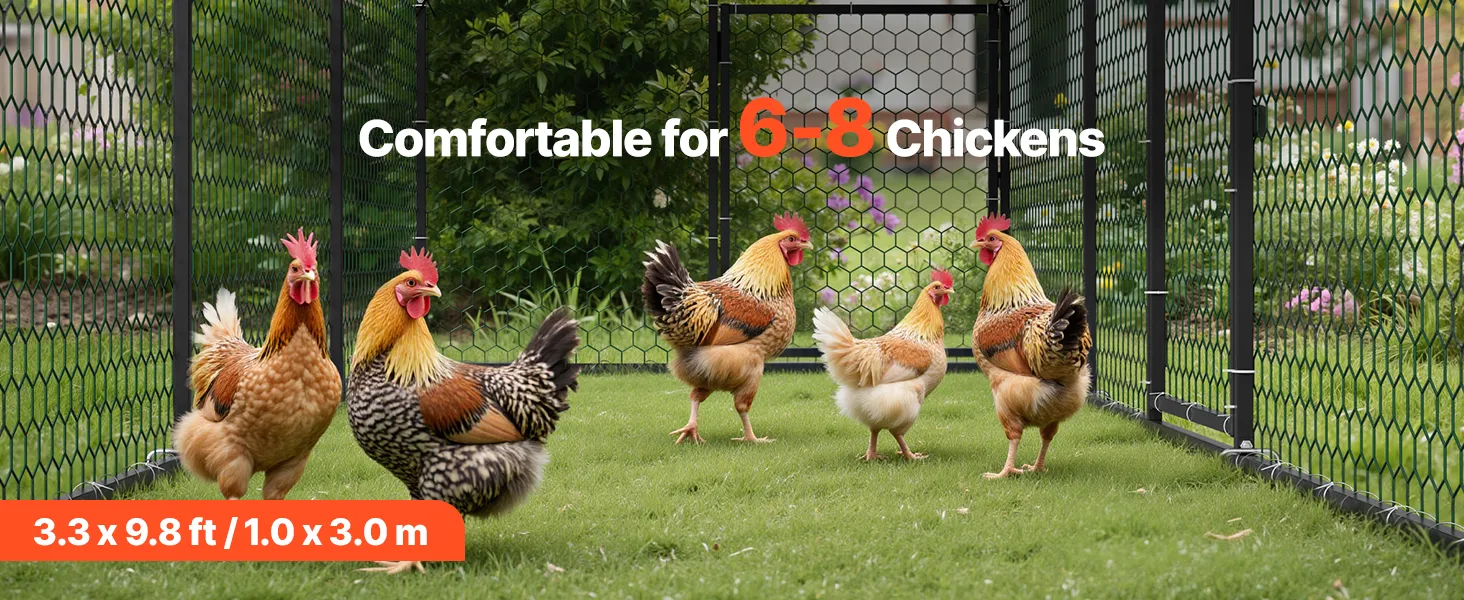 VEVOR Metal Chicken Coop for 6-8 Chickens, 1 x 3 x 1 m, Small Chicken Cage with Waterproof Cover & 3 Doors, Spire Roof Poultry Run Compatible with Wooden Coops, for Rabbit Hen Goose Duck
