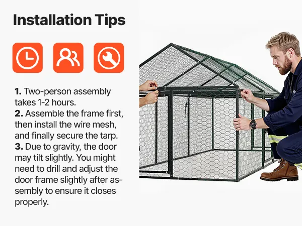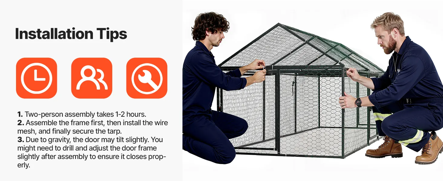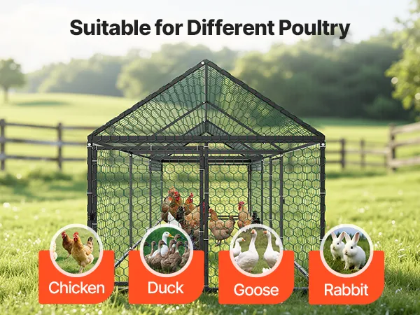 Sturdy and convenient, this chicken coop provides a secure shelter for your chickens, ducks, and rabbits, protecting them from harsh weather and predators while ensuring a healthy, stress-free environment.