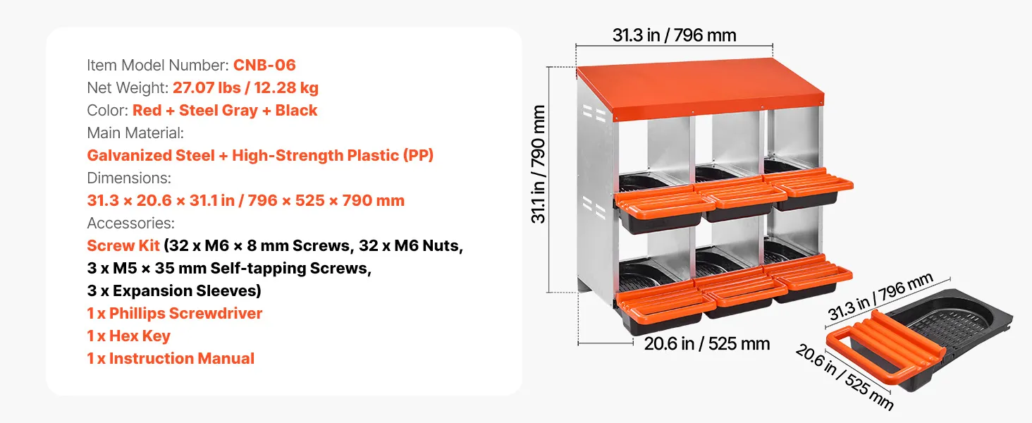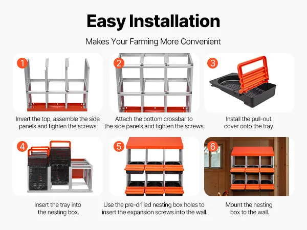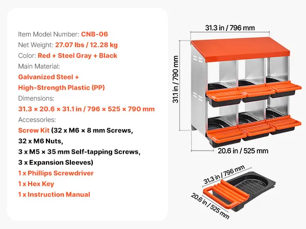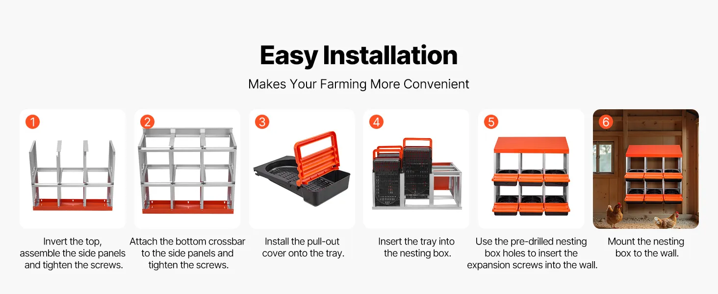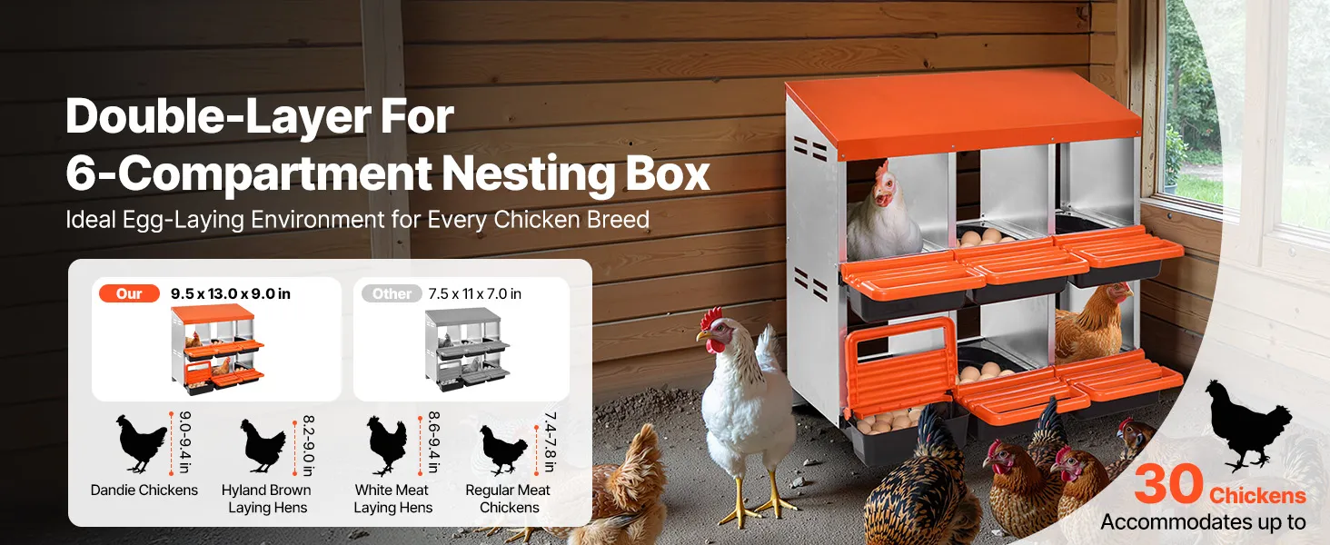 VEVOR 2 Tiers Chicken Nesting Boxes, 6 Compartments, Metal Egg Laying Boxes with Protective Collection Lids, Roll Out Nesting Box, Easy to Assemble, Ideal for Hens, Ducks, Chickens, and Other Poultry