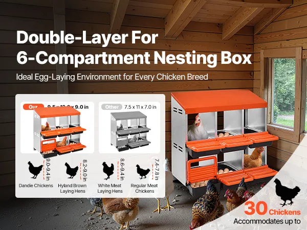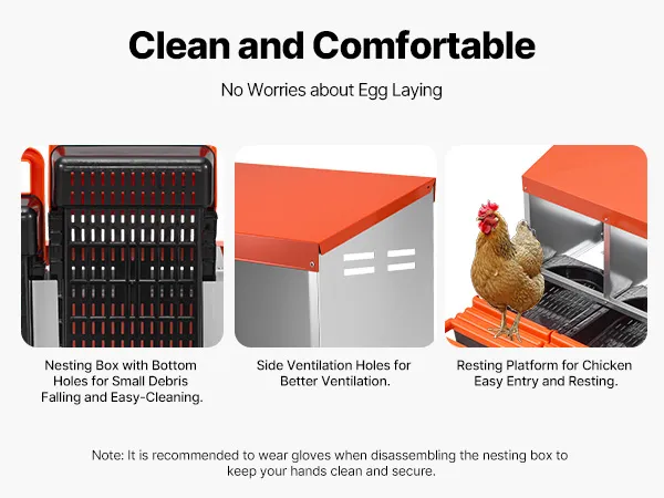Our nest boxes for chickens include a detachable nesting box for easy cleaning, paired with a spacious and cozy design. They provide a clean, comfortable laying space that improves egg quality.