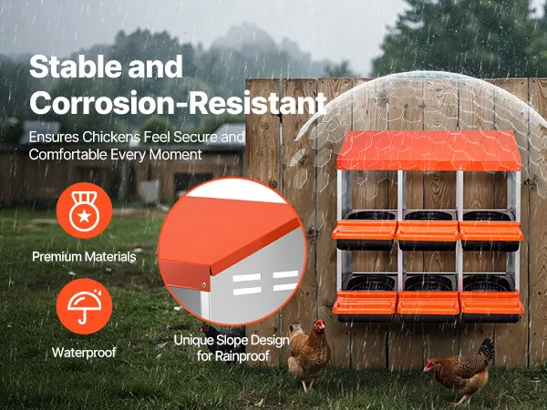 Built with a sturdy galvanized steel frame and reinforced plastic parts, these nesting boxes for chickens withstand dampness and tough outdoor conditions. They deliver corrosion-resistant and prolonged performance for efficient poultry care.