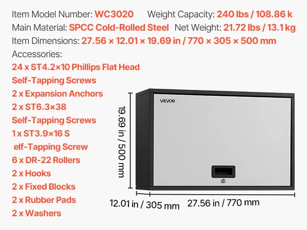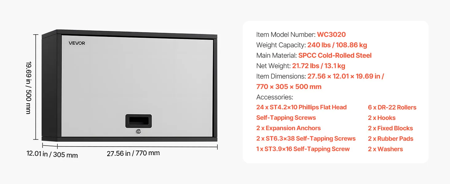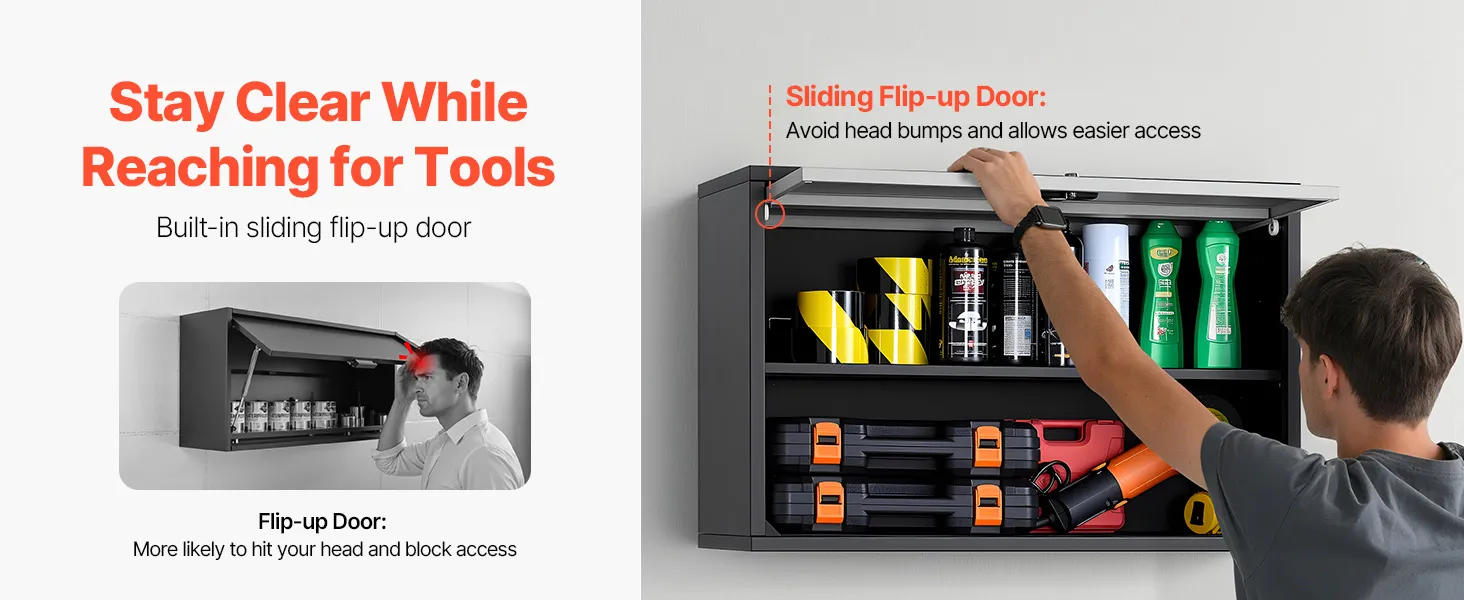 VEVOR Metal Wall Cabinet, 77W x 30.5D x 50H cm, Floating Garage Tool Cabinet with Up-Flip Door and Shelf, 108.9 kg Load Capacity, Fit for Garage, Basement, Kitchen, Warehouse Assembly Required