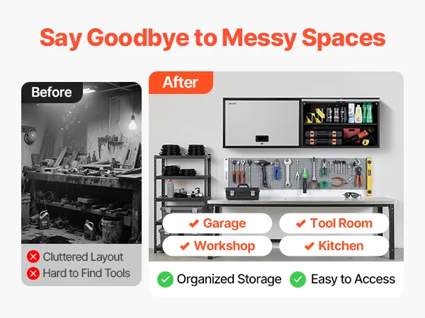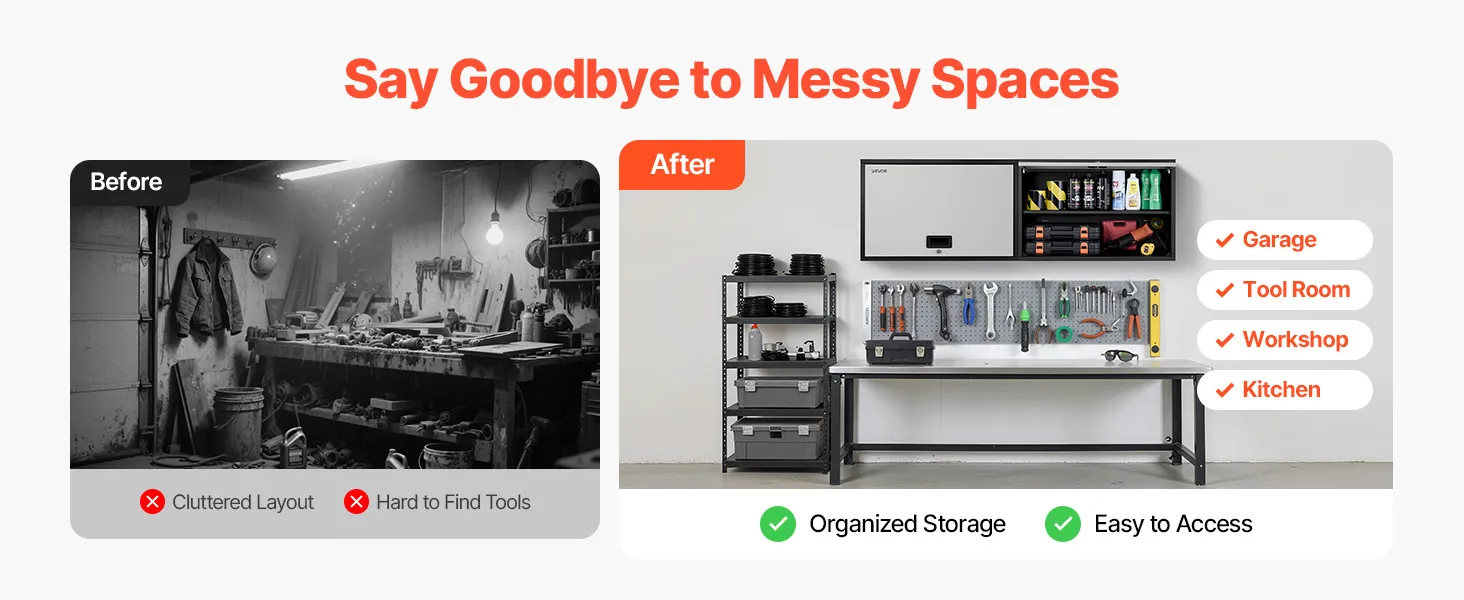 Our metal wall cabinet keeps tools and supplies in order for garages, workshops, kitchens, and more. Everything stays neatly arranged and easy to grab whenever you need it.