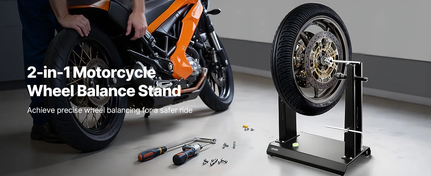 This motorcycle wheel balancer and truing stand is an excellent solution that lets you perform precise, routine tire maintenance and repairs right in your garage—all by yourself.