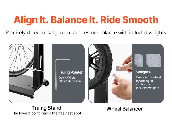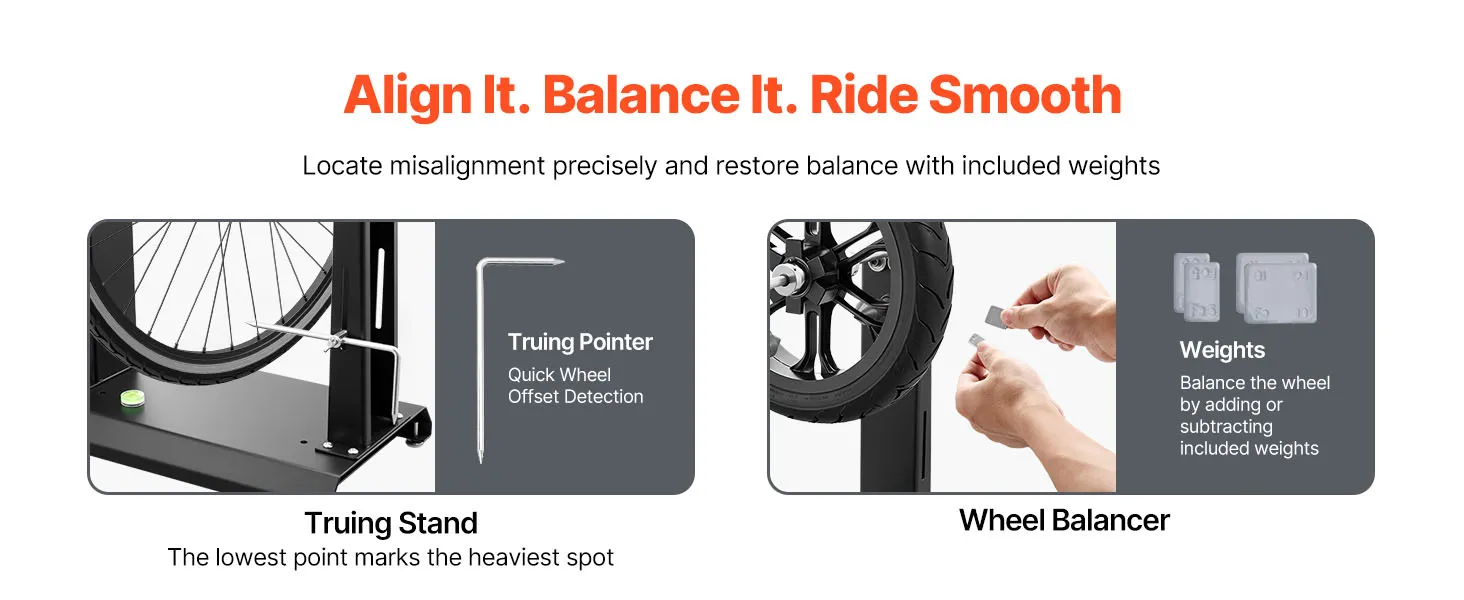 VEVOR Motorcycle Wheel Balancer, 40 kg Capacity, Tire Balancer & Truing Stand with Adjustable Centering Cones and Truing Pointer, Balancing Tools for Most Motorcycles & Bicycles, 889 mm Wheel Dia