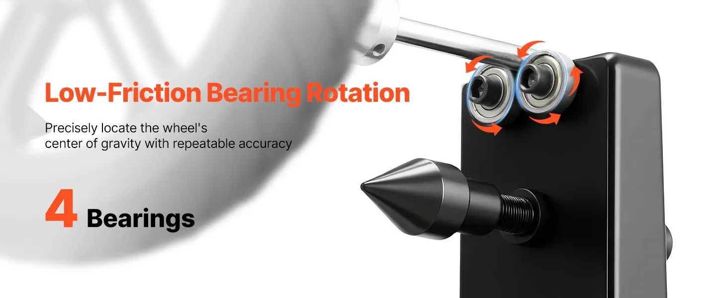 The precision bearings of this motorcycle bike wheel balancer ensure friction-free spinning. Wheels rotate effortlessly and stop at the heaviest point, ensuring accurate balance every time.