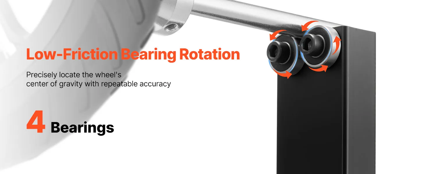 • Easy to Use: This tire balancer stand lets you secure the wheel, spin it, and allow it to stop naturally—the lowest point reveals the heavy spot. Mark it, rotate it to the top, and apply weights. Once balanced, the wheel stays steady at any position