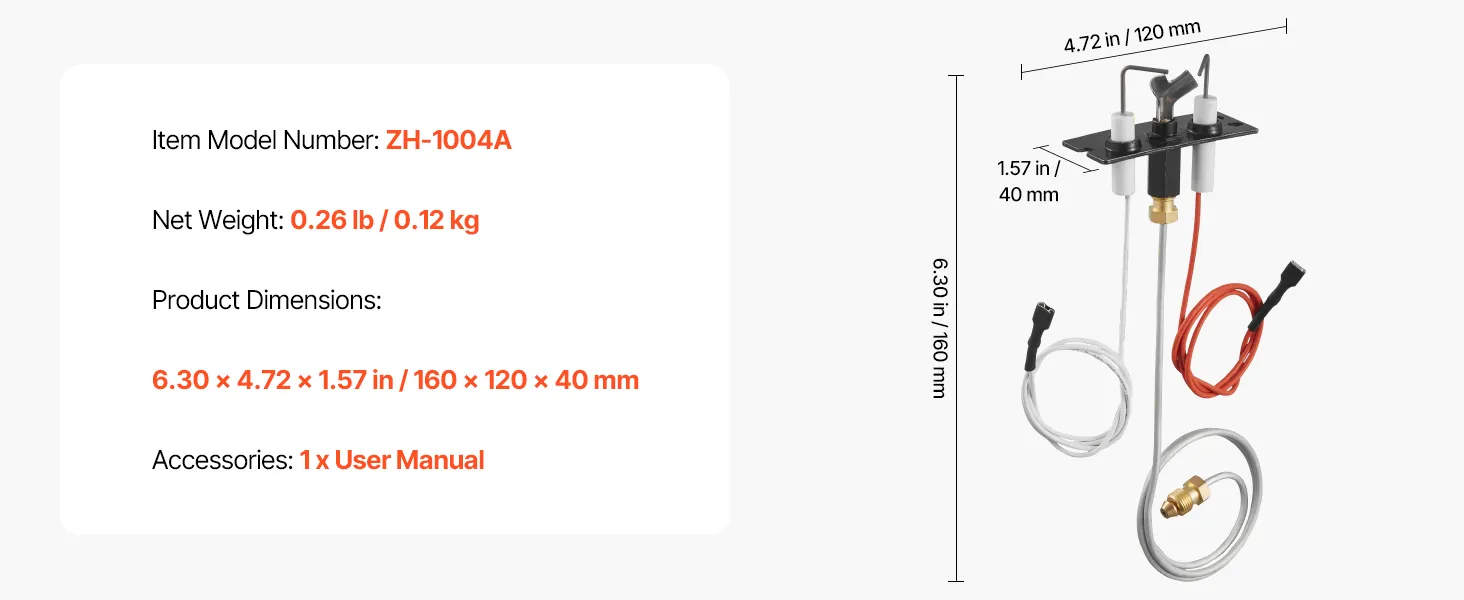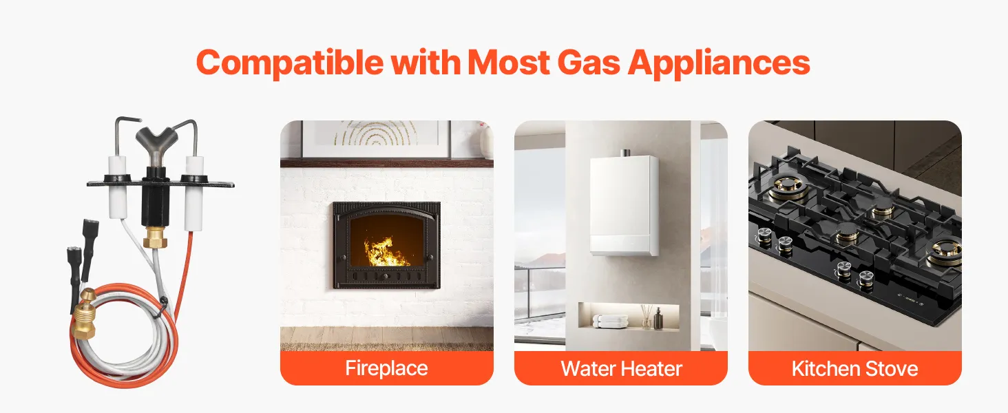 This gas pilot ignition assembly is compatible with most mainstream fireplaces on the market. It also fits household water heaters and kitchen stoves, easily meeting the ignition needs of various gas appliances.