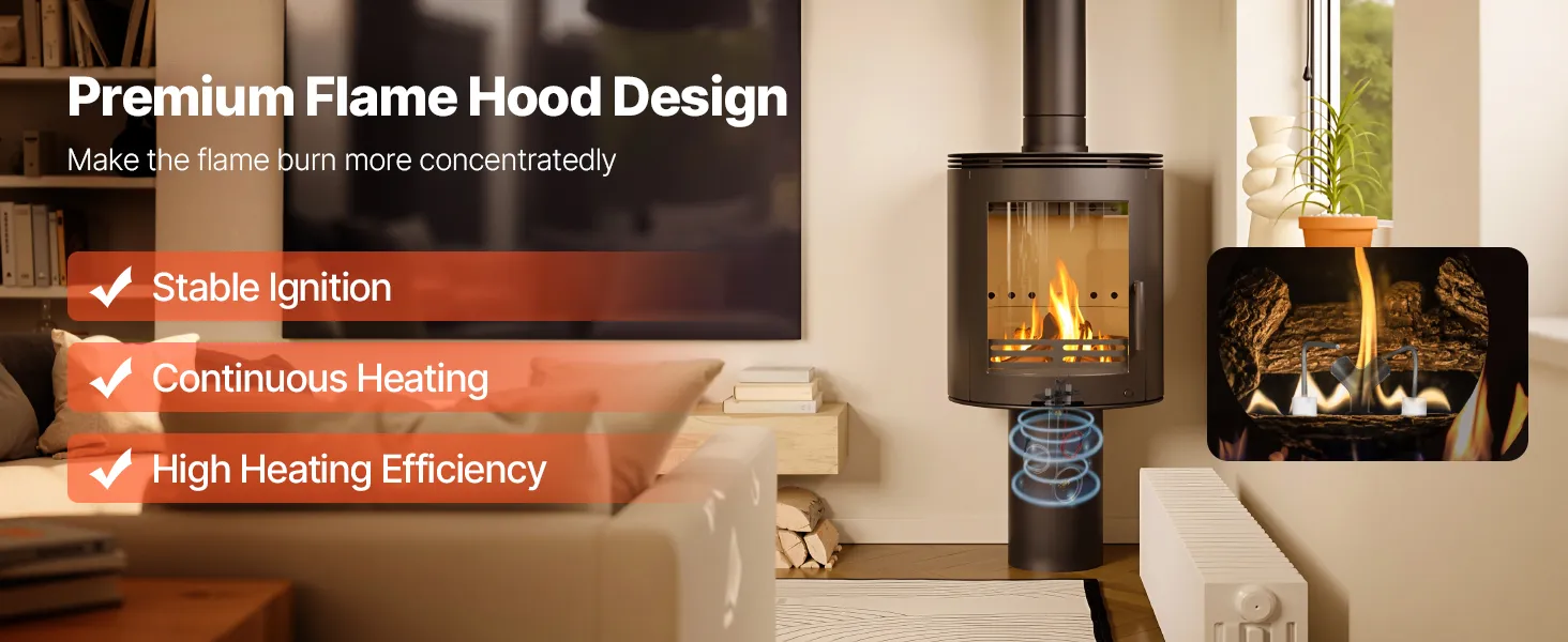 Our fireplace gas pilot assembly features a premium flame hood design, making the powerful flame burn more steadily and realizing fast and complete combustion. The steady flame continuously delivers high heat energy, greatly enhancing heating efficiency.
