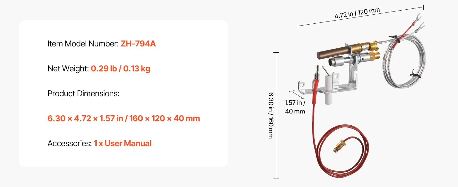 This gas pilot ignition assembly is compatible with most mainstream fireplaces on the market. It also fits household water heaters and kitchen stoves, easily meeting the ignition needs of various gas appliances.