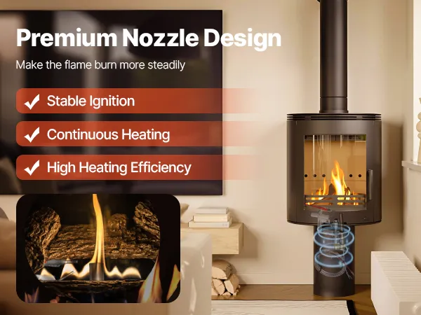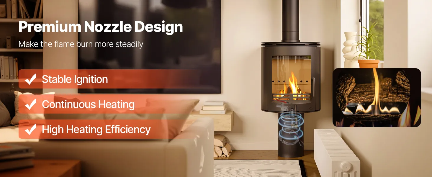 Our fireplace gas pilot assembly features a premium nozzle design, making the powerful flame burn more steadily and realizing fast and complete combustion. The steady flame continuously delivers high heat energy, greatly enhancing heating efficiency.