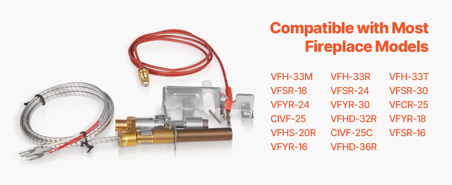 VEVOR Gas Pilot Assembly, OE 103779-01, PP231, NG8218 Fireplace Natural Gas Ignition Replacement, Compatible with CIVF-25, CIVF-25CF, VFH-33M, VFH-33R, VFH-33T, VFHS-20R, VFSR-16, VFSR-18 Models
