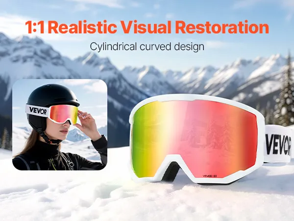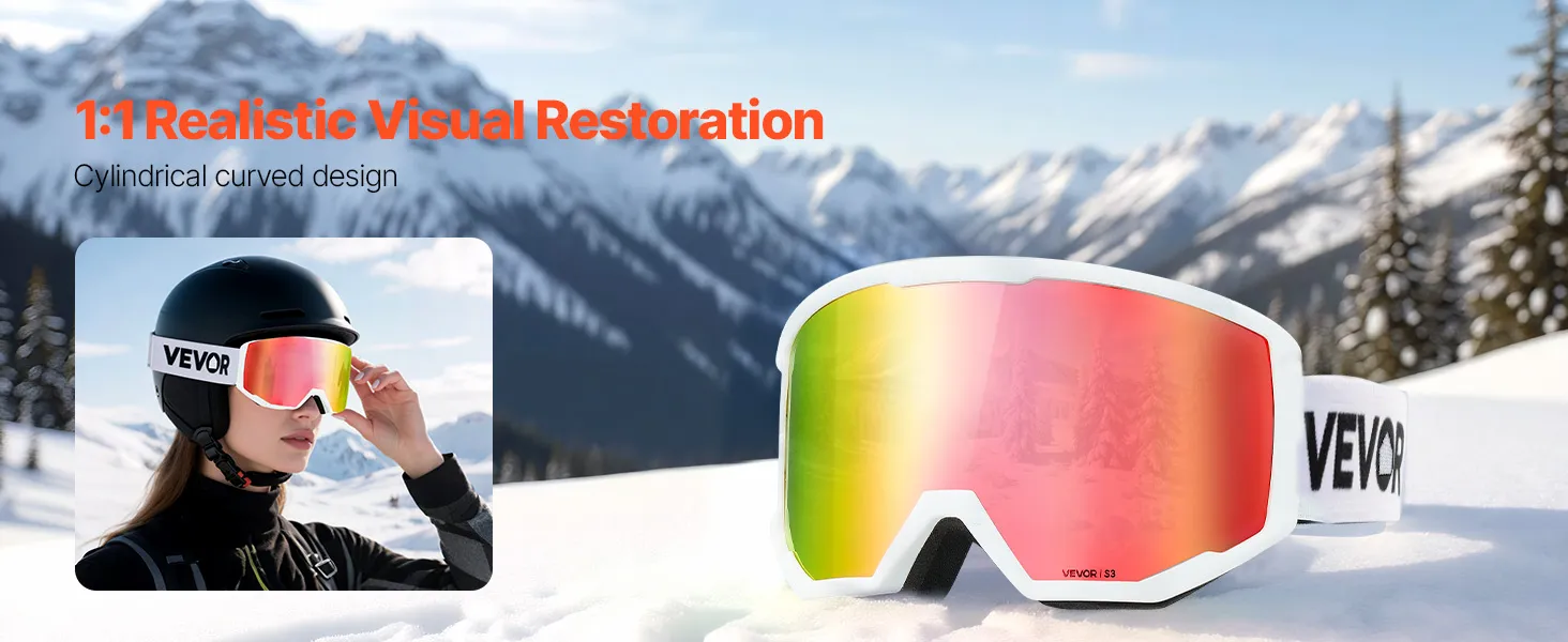 The advanced cylindrical lens of the snow goggles offers true 1:1 distortion-free vision, restoring a natural view of the slopes. The gentle curve reduces visual warping, making it ideal for pro skiers who demand precise terrain judgment.