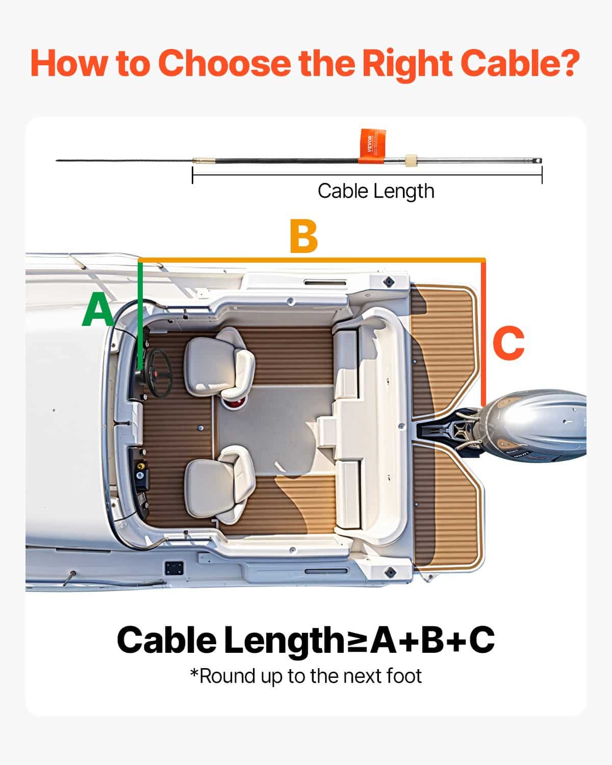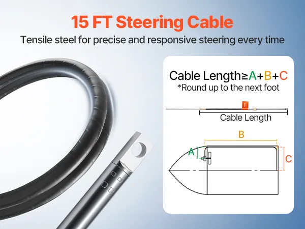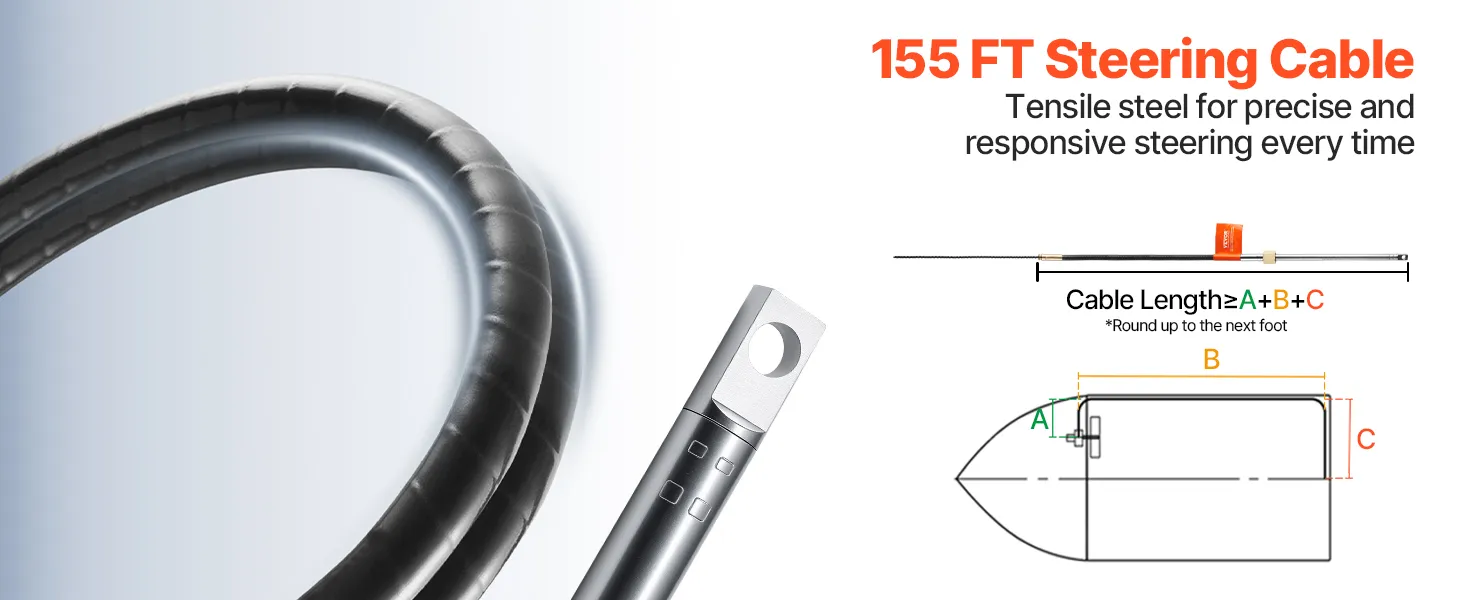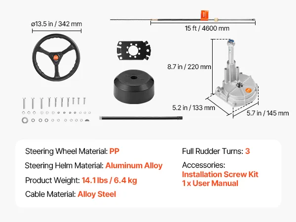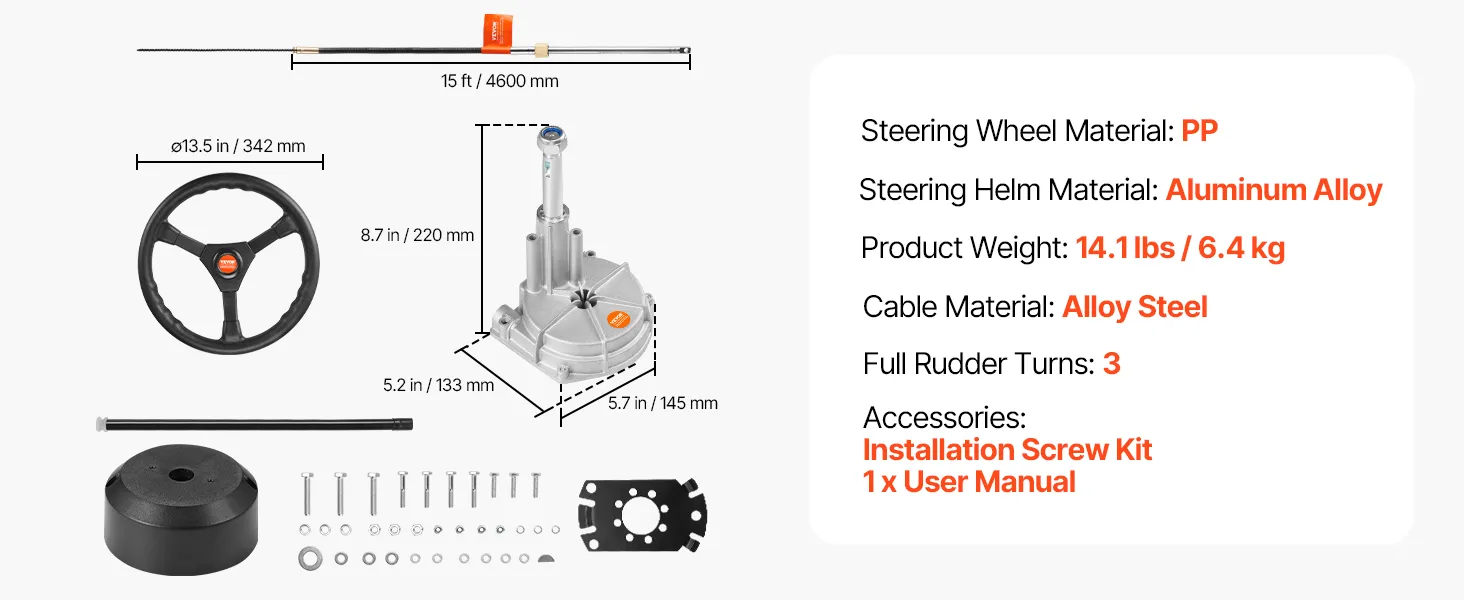 VEVOR Outboard Steering System 15\' Outboard Steering System 15 Feet Boat Steering Cable with 13\" Wheel Durable Marine Steering System
