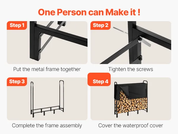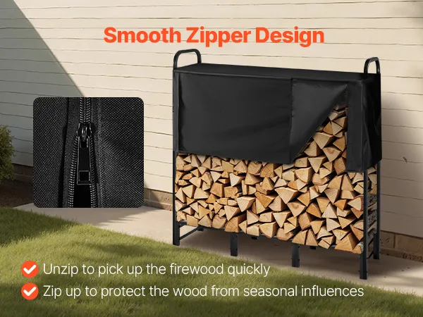 • Quick Setup & Easy Access: The log holder and cover combo make setup easy. Just set up the rack and drape the cover over. Add logs to adjust cover’s height. Included loop and hook fastener, and zippered front flap make it easy to access firewood, remove or add logs.