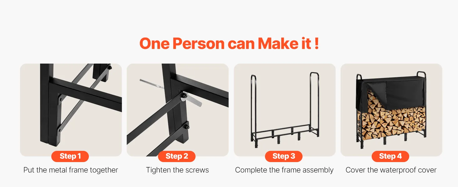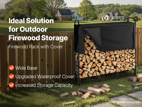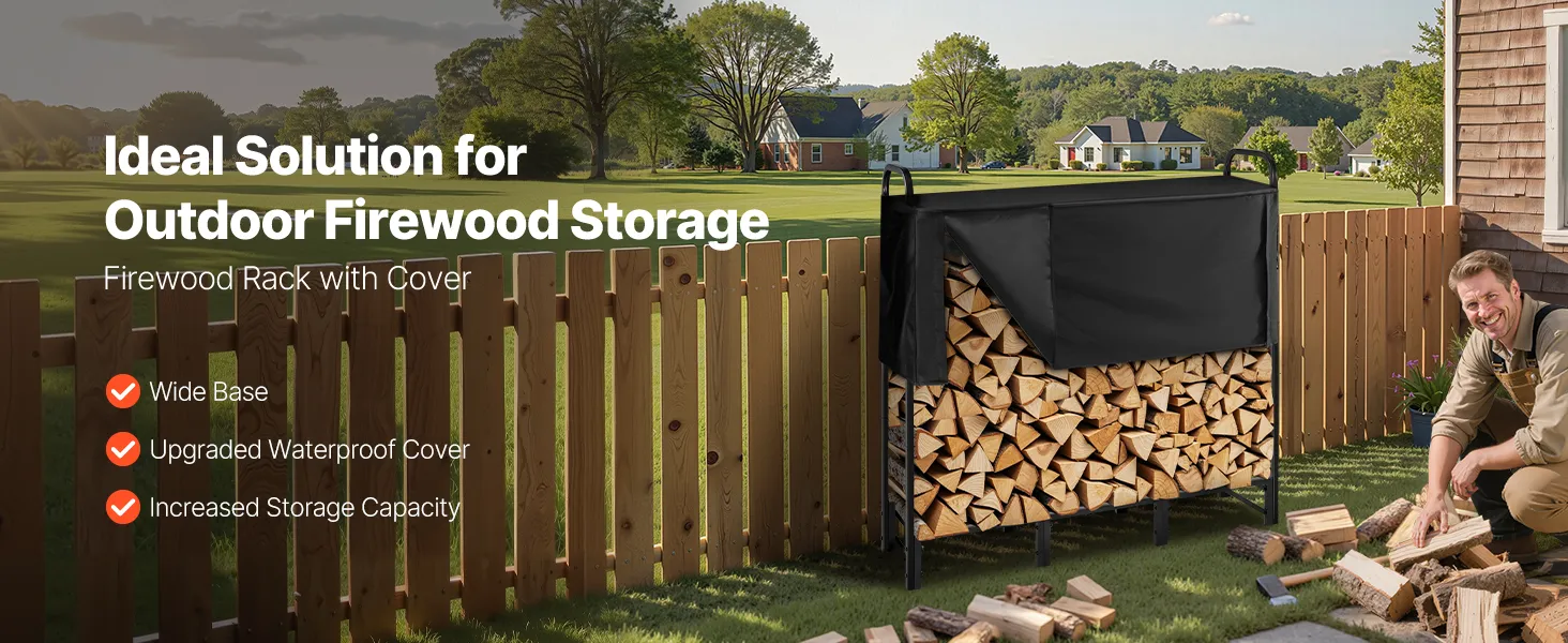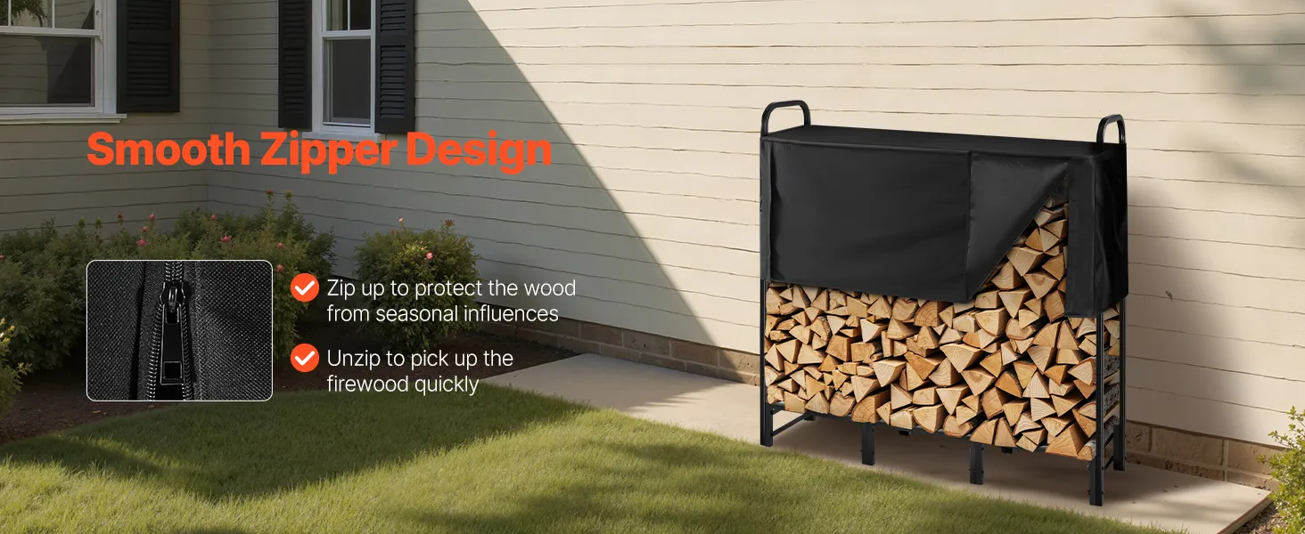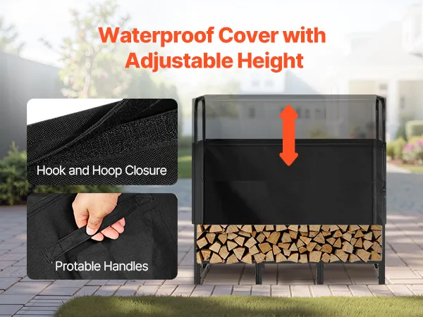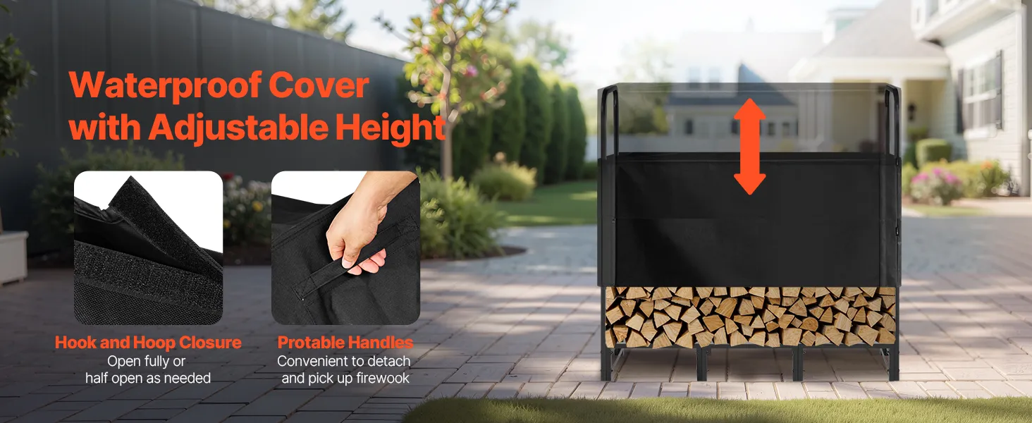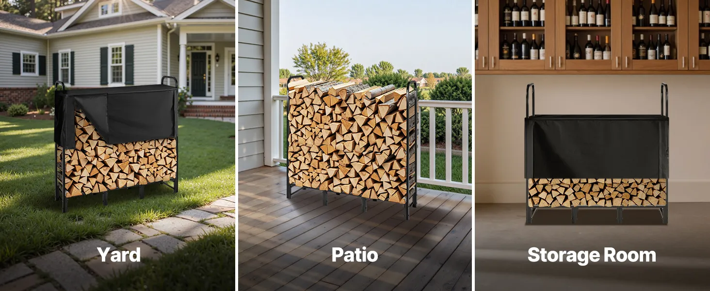 • Durable Material: The included firewood rack cover is made from 600D Oxford fabric with a PU waterproof coating and UV protection, ensuring it won’t crack in extreme heat or cold. This log rack and cover combo keeps your firewood secure from rain, snow, all year round—no matter the season.