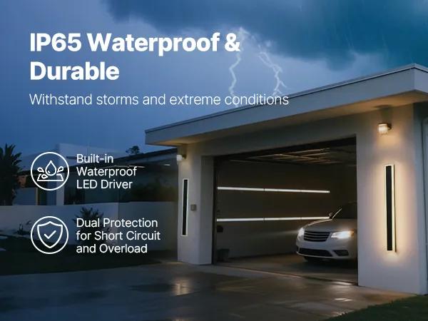 With IP65 waterproof, our outdoor wall light fixture has excellent waterproof and airtight performance, withstanding extreme weather conditions like storms and strong winds. Built-in waterproof LED driver features short-circuit and overload protection, ensuring reliable operation.