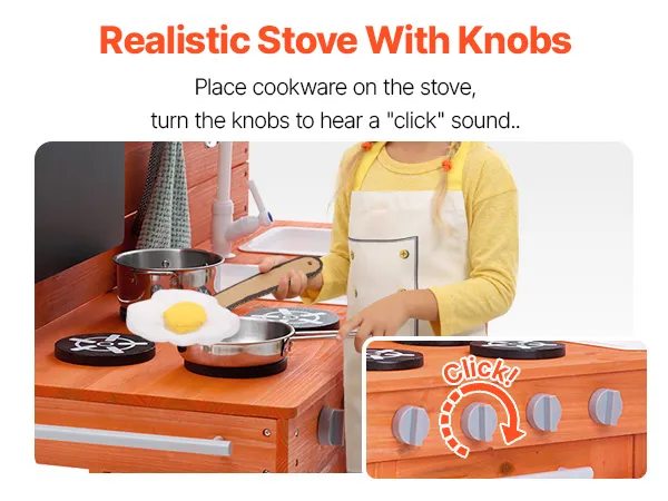 Деревянная уличная кухня VEVOR для детей с раковиной, плитой, доской и 13 аксессуарами – игровая кухня для мальчиков и девочек