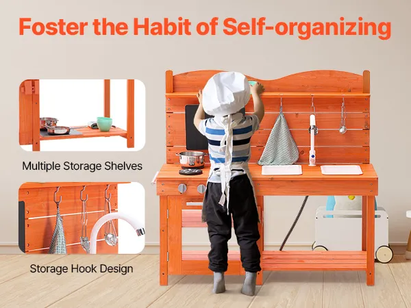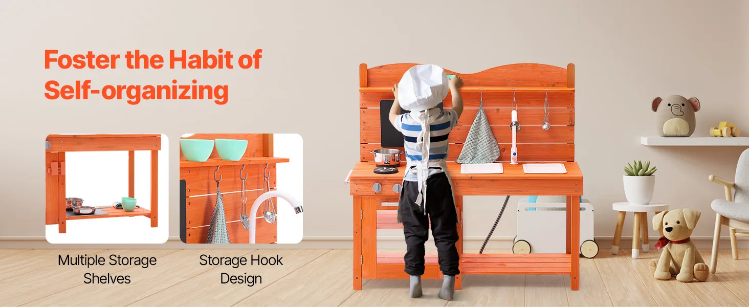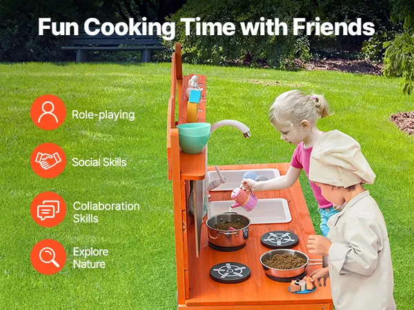 • A Fun Developmental Gift: This pretend play outdoor kitchen is perfect for birthdays or holiday gifts for children, whether for boys or girls! With a 20.47-inch countertop height, kids can easily reach and organize their play items, helping improve hand-eye coordination. The spacious work area allows children to play with friends, explore the joys of nature outdoors, and improve collaboration and social skills
