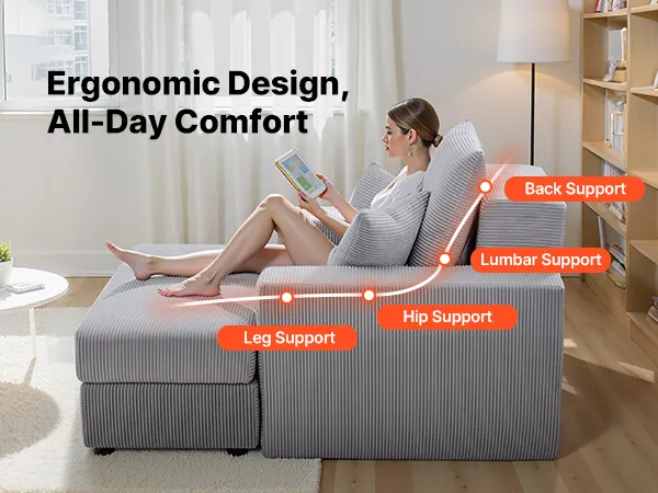 High-density seat cushion of this oversized chaise lounge provides firm support while ergonomic design ensures comfort for long sitting sessions, preventing fatigue and sagging.