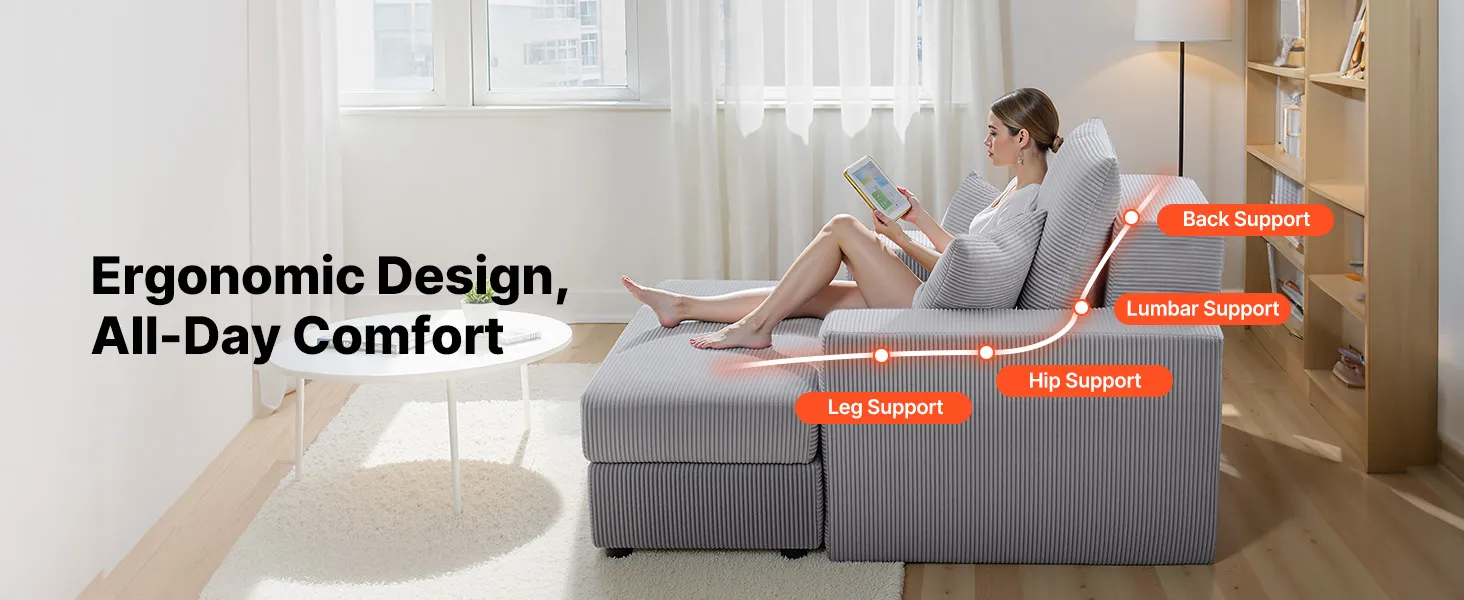 This chaise lounge chair features ergonomic design and high-density cushioning for lasting comfort and support. Its modern, stylish design makes it ideal for reading, napping, or relaxing in bedrooms, living rooms, or study areas.