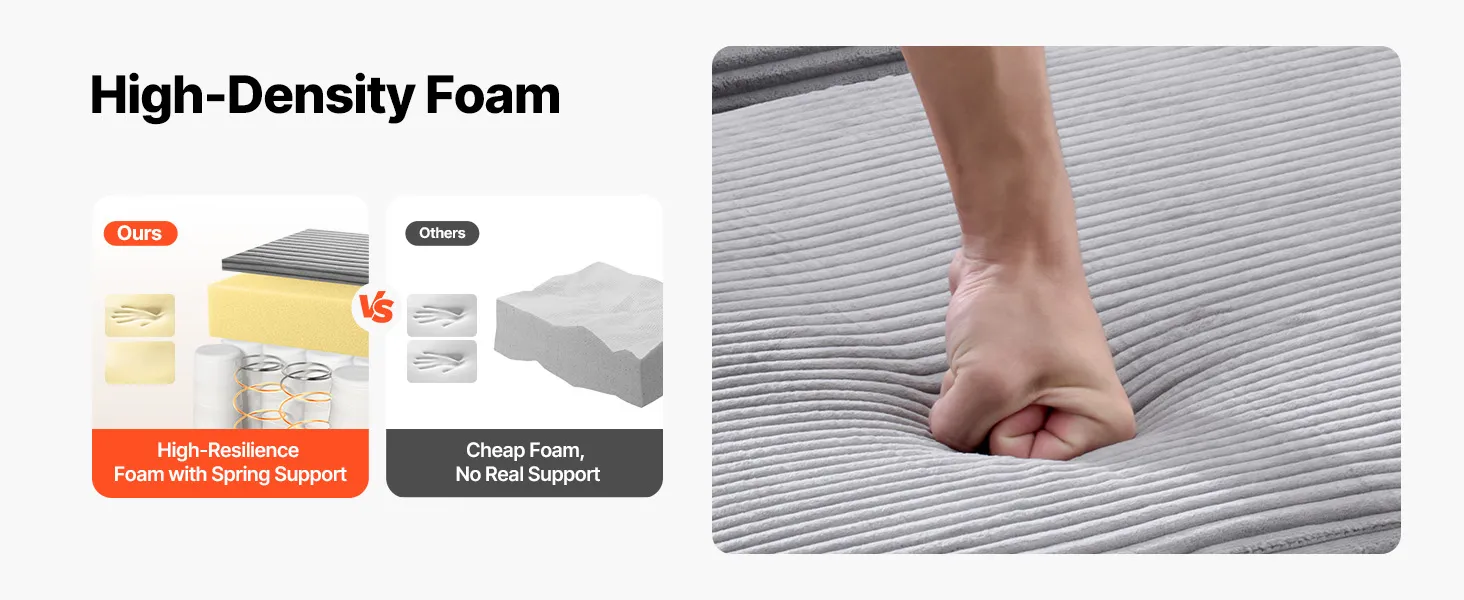 - High resilience sponge + springs