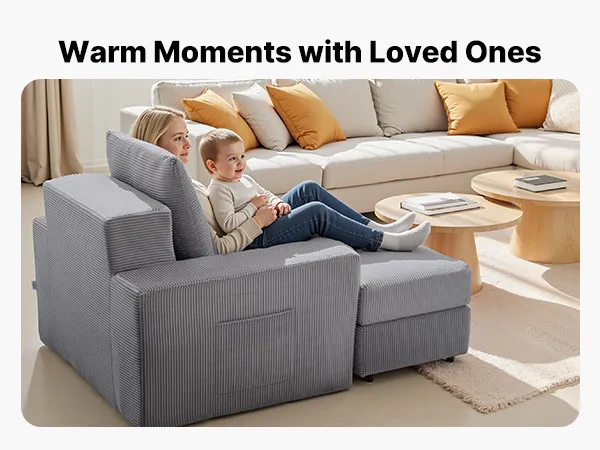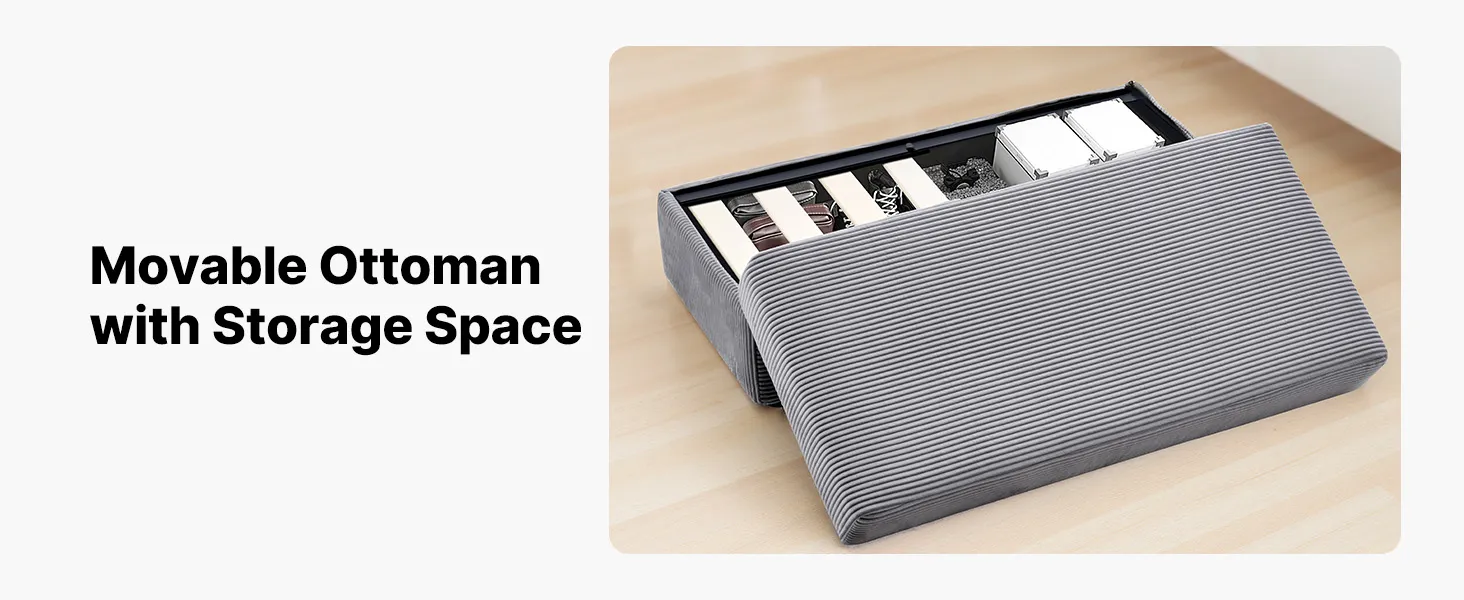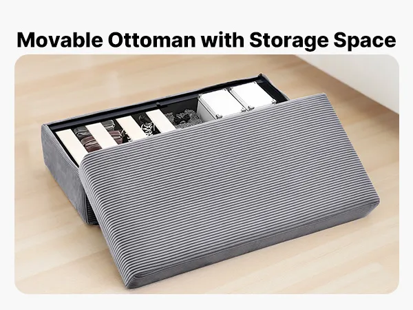 Premium upholstery feels gentle to the touch, while a movable storage ottoman and convenient side pockets enhance your lounging experience.