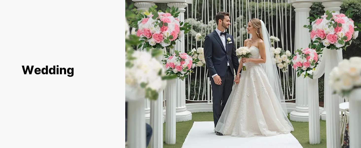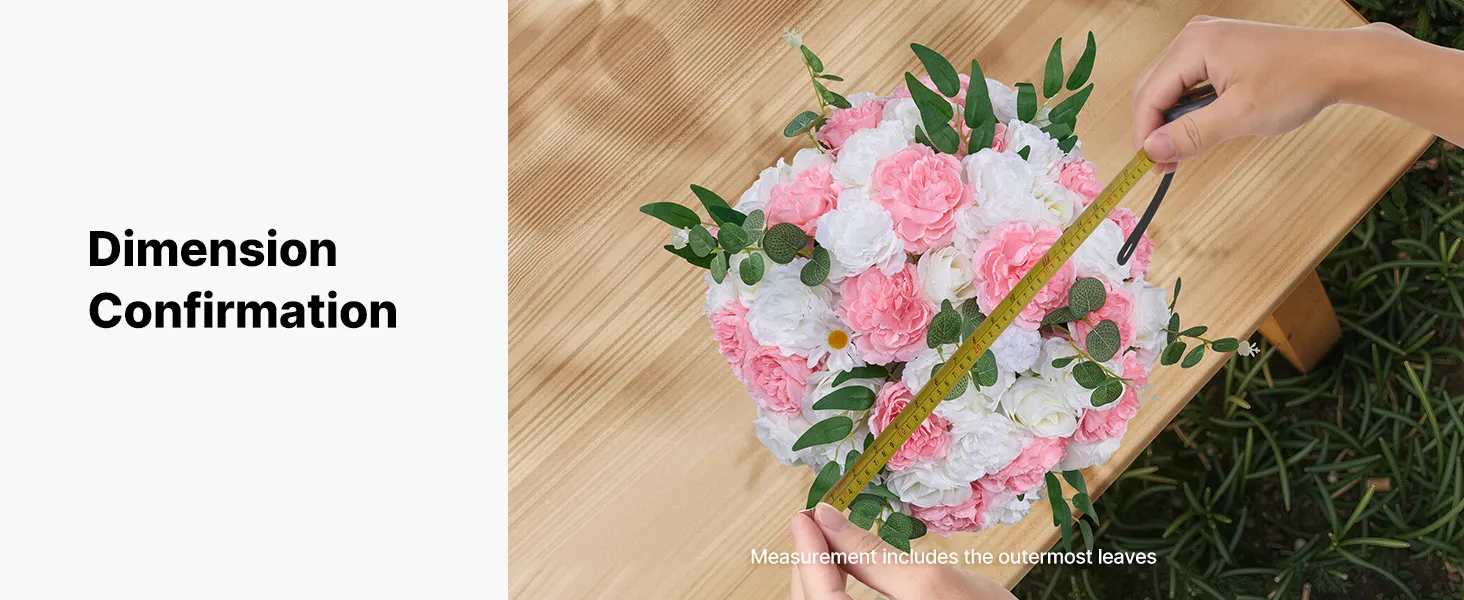 A 1: Our flower bouquets fit most wedding stands, arches and centerpieces. Please refer to the size chart before purchasing. If you are using a custom frame, please make sure the base size matches the opening at the bottom of the bouquet.