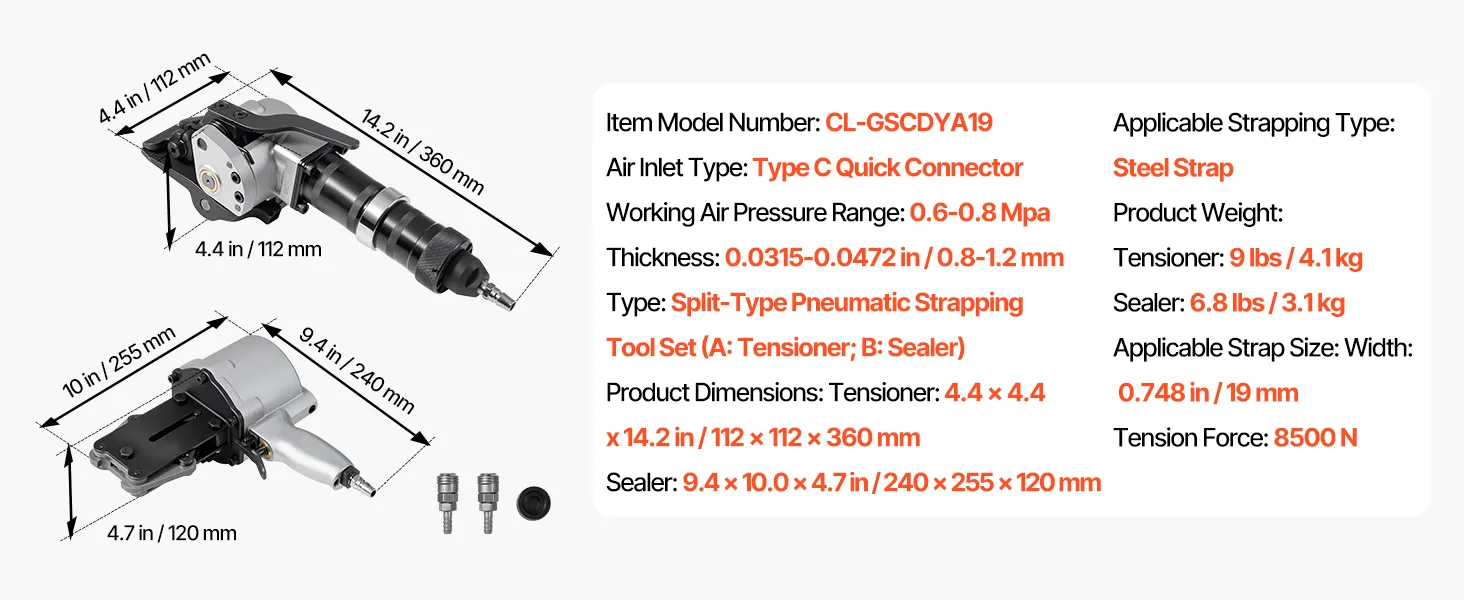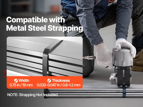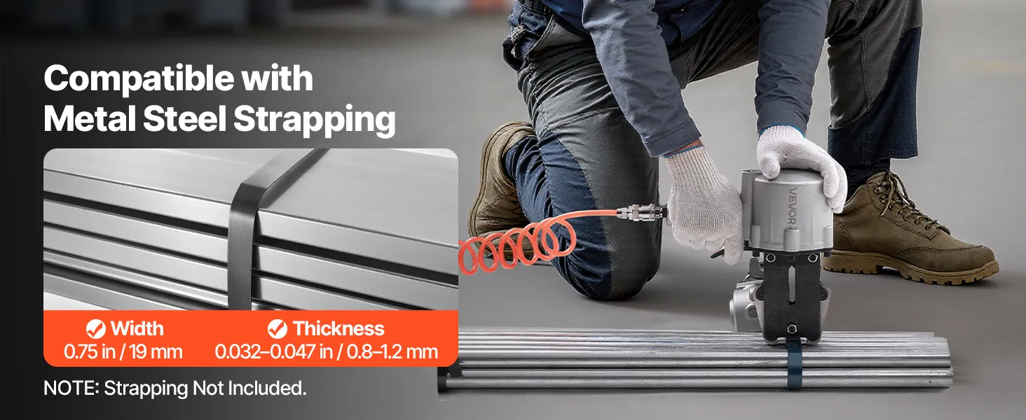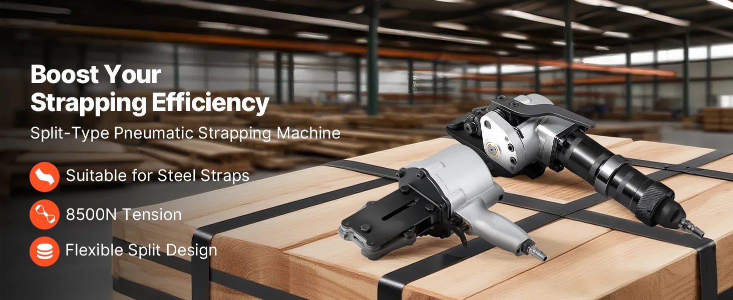 VEVOR Pneumatic Steel Strapping Machine, 8500 N Tension Force, Metal Strapping Tool Tensioner and Cutter Sealer for 19 mm Width Metal Belt, Heavy Duty Split Type Baler for High Tensile Packaging