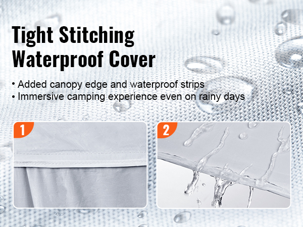 Переносная палатка размером 10 x 20 футов оснащена покрытием 500D из полиуретанового серебра, которое обеспечивает защиту от ультрафиолета UPF 50+ и огнестойкость CPAI-84. Бесшовные велкросы можно собирать и разбирать по желанию, и вода из них не просачивается. Сделайте отдых на природе для вашей семьи более комфортным.