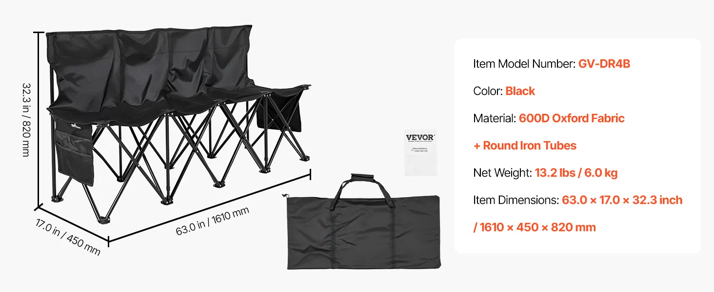 This product is made from durable 600D oxford fabric with thickened, reinforced support poles for enhanced strength and stability. Featuring a foldable design, it’s ideal for sports events, parties, outdoor camping, or any occasion where you need sideline seating.