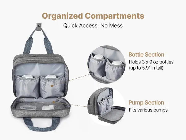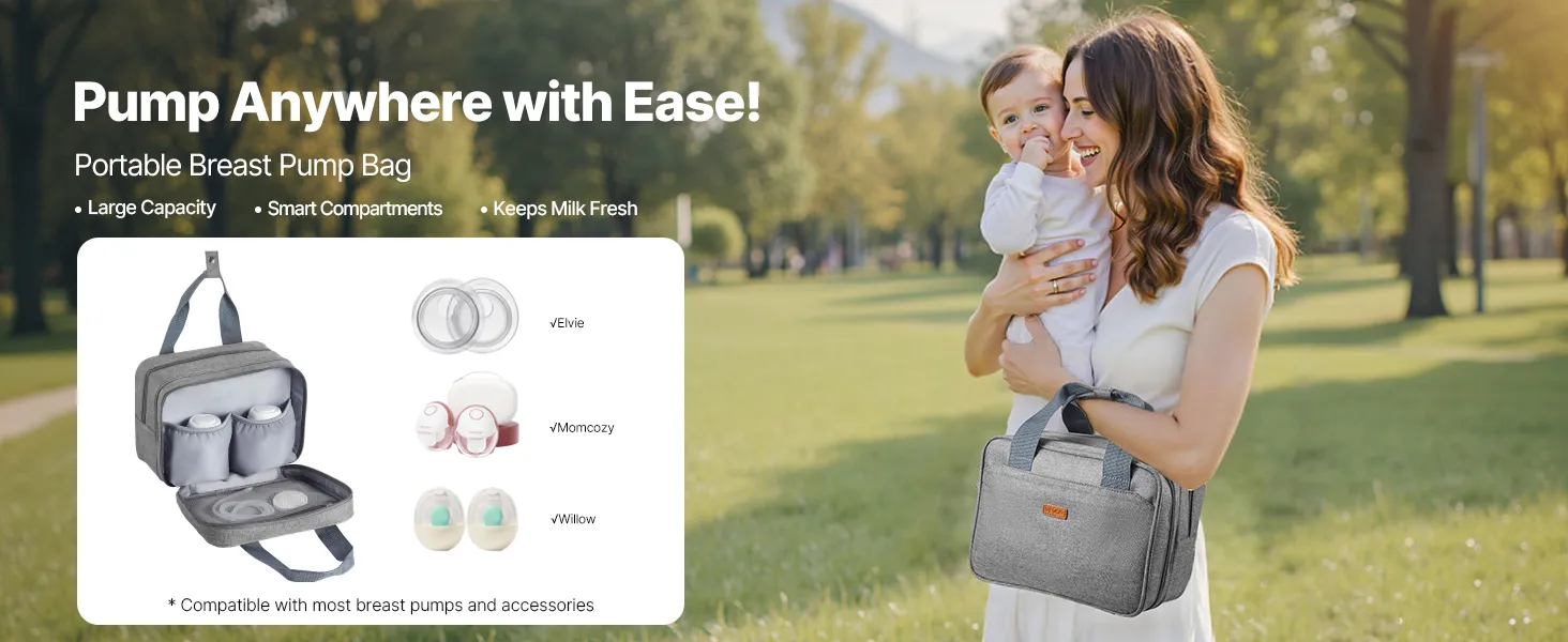 This breast pump bag has roomy compartments for daily essentials. The insulated lining keeps milk fresh, and the portable design makes it super easy to carry anywhere.