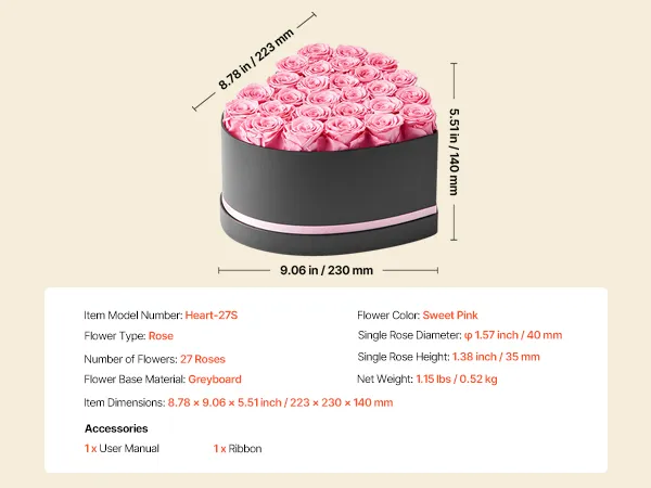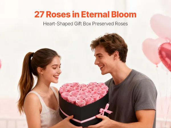 VEVOR Forever Flowers, 27 Preserved Roses in a Heart Shape Box, Eternal Flowers Immortal Bouquet Birthday Present for Women Her Wife Mothers, Anniversary, Valentine's Day,Christmas, Pink