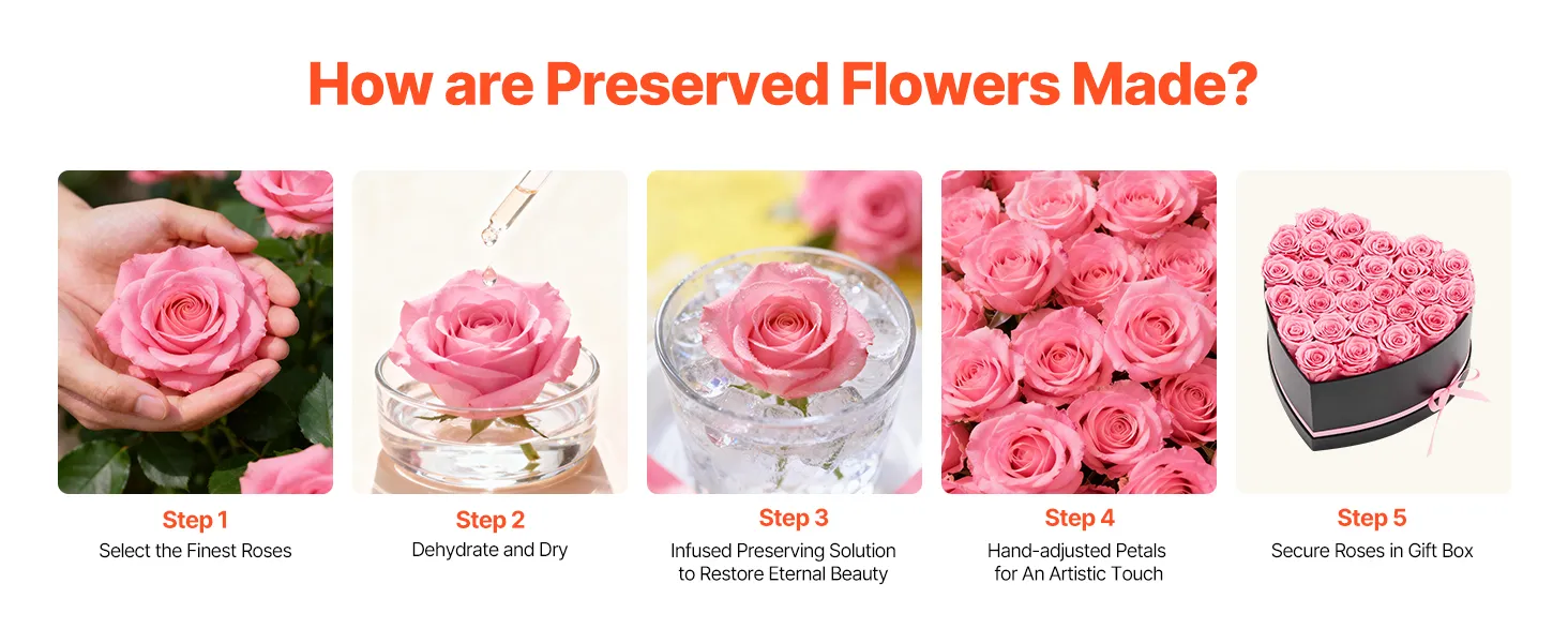 Crafted with real roses using professional preservation techniques, each forever flower is supported by a stable frame, staying vivid, and elegant for long-term enjoyment.