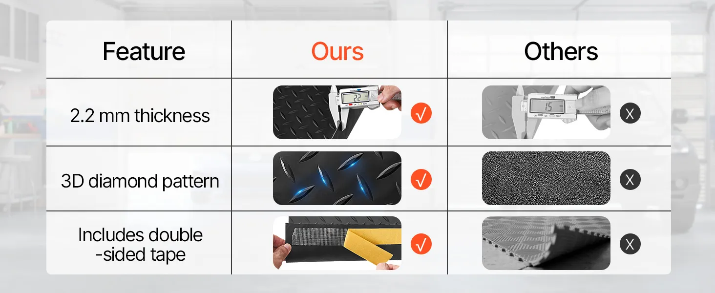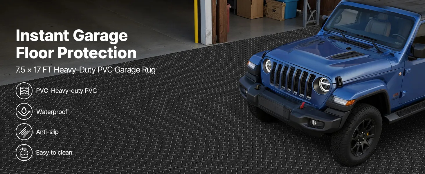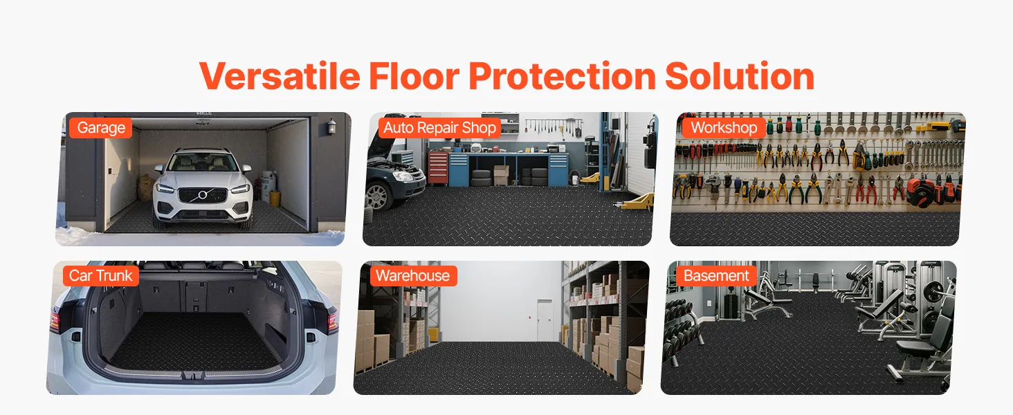 Choose the garage flooring roll for reliable, pressure-resistant, slip-resistant, and wear-resistant protection. Its waterproof surface cleans easily and the large coverage fits most vehicles or provides a cushioned area in warehouses.