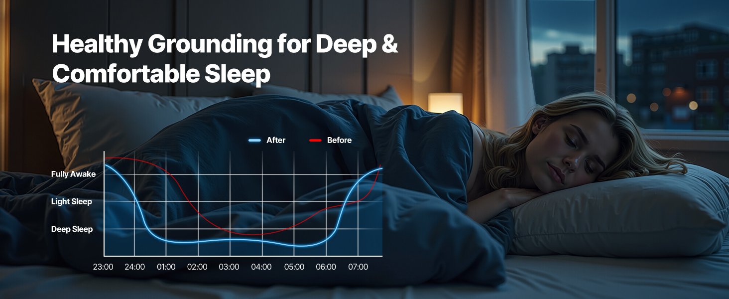 • Experience Natural Sleep: Enjoy a peaceful night’s sleep with our grounding sheet. It gently releases static electricity from your body to the Earth through a grounding cord. Say goodbye to restless nights and hello to improved sleep quality and reduced fatigue