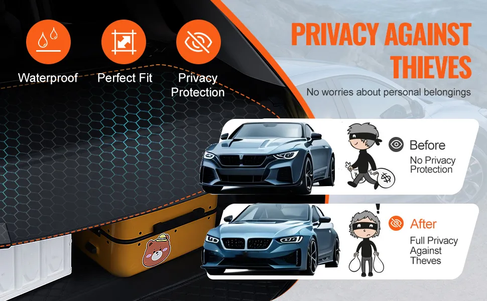 This cargo cover effectively protects the privacy of your car's interior, preventing others from seeing your personal belongings and deterring theft. It also shields items from sunlight, preventing fading and aging.