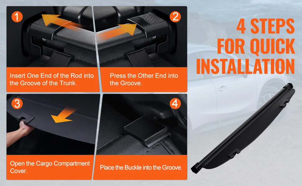 This retractable cargo cover is designed to match the curvature of the original vehicle, perfectly fitting the luggage space of your car to keep it neat and organized. Custom-made for specific vehicle models, please check compatibility with your car's model year before purchasing.
