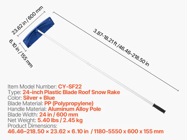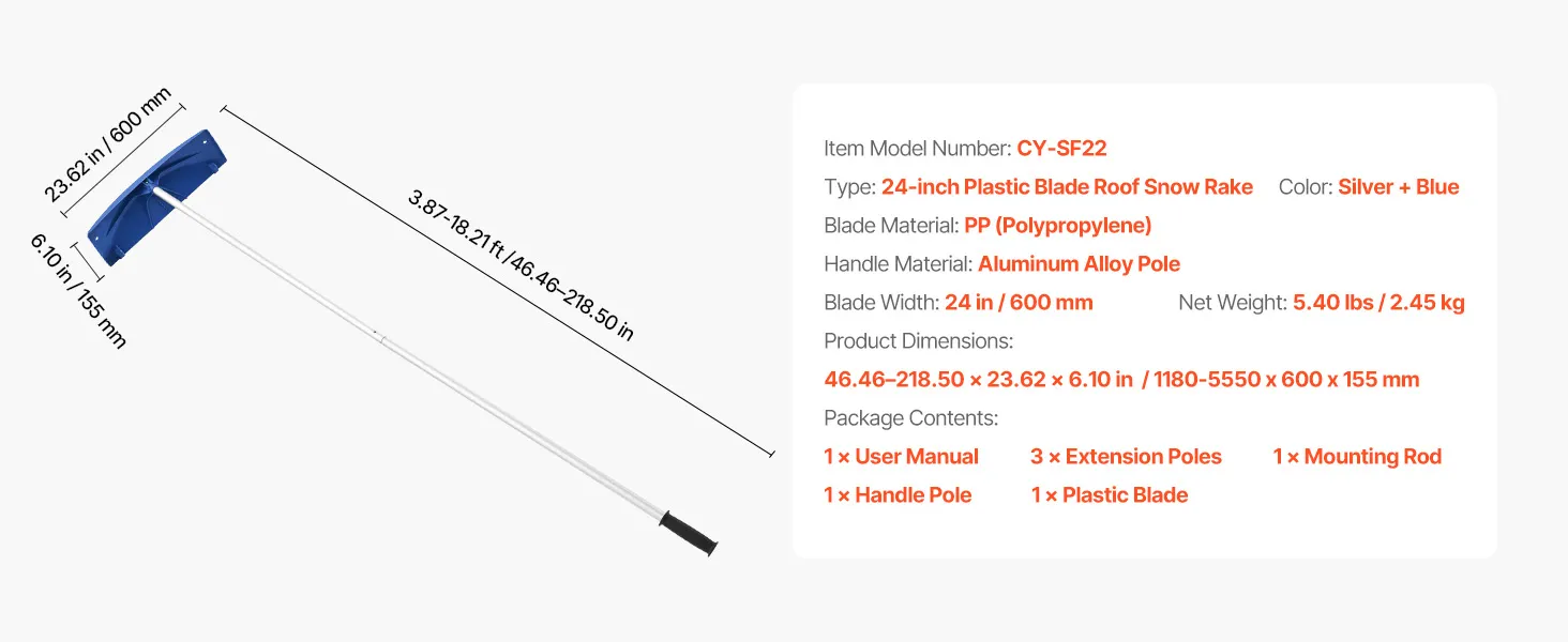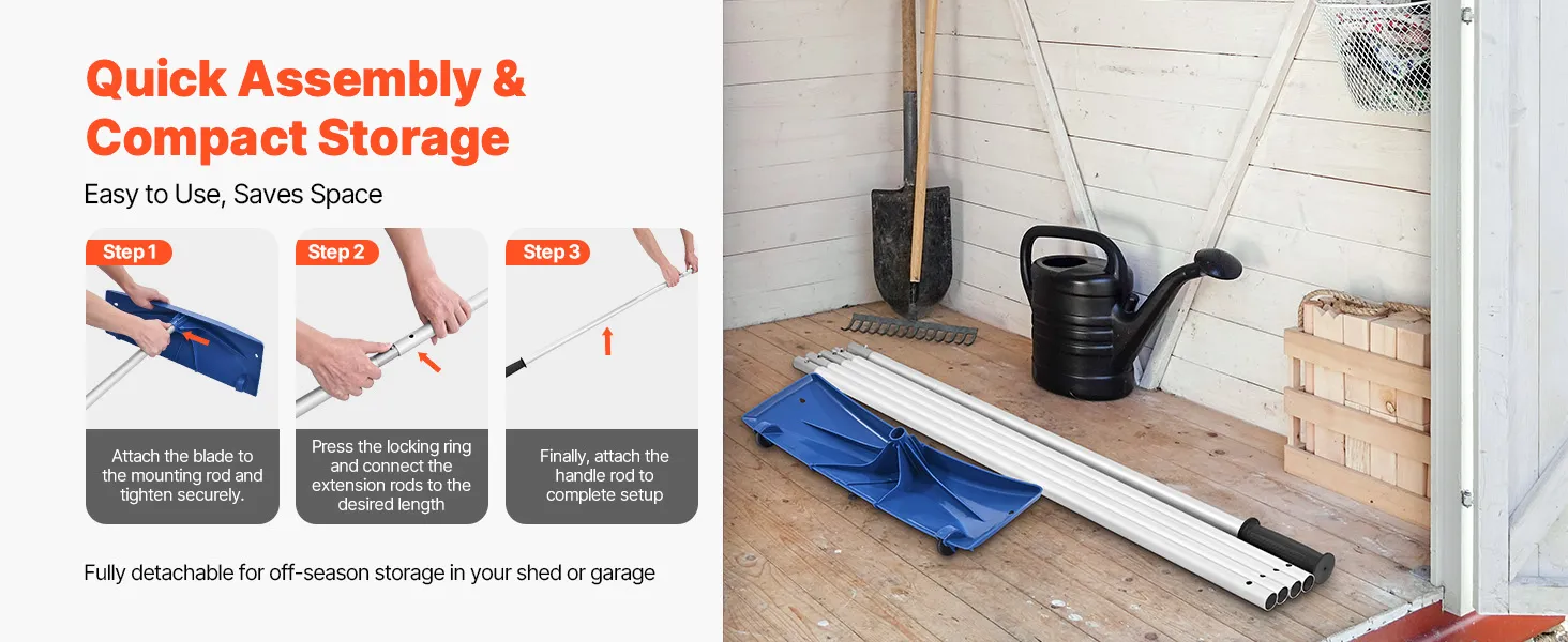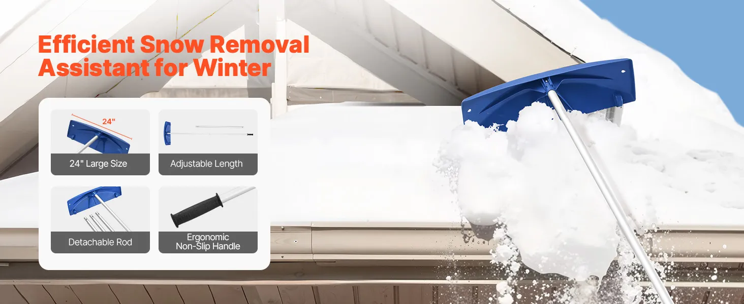 The detachable design allows this roof rakes for snow removal to be easily disassembled when not in use. The compact size make it easy to store in closets or garages, while make it easy to carry and move.