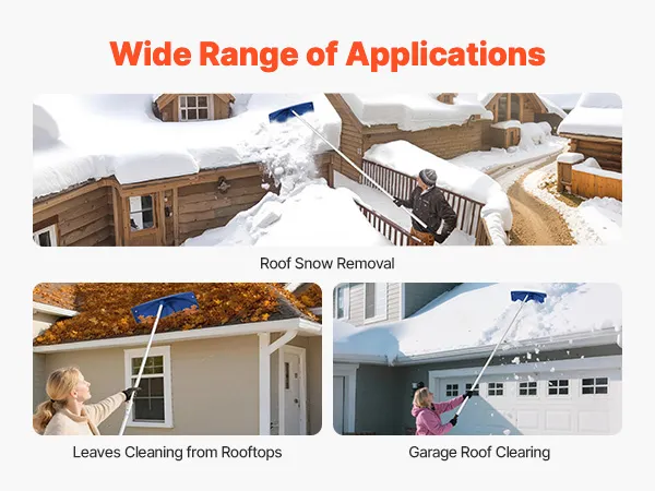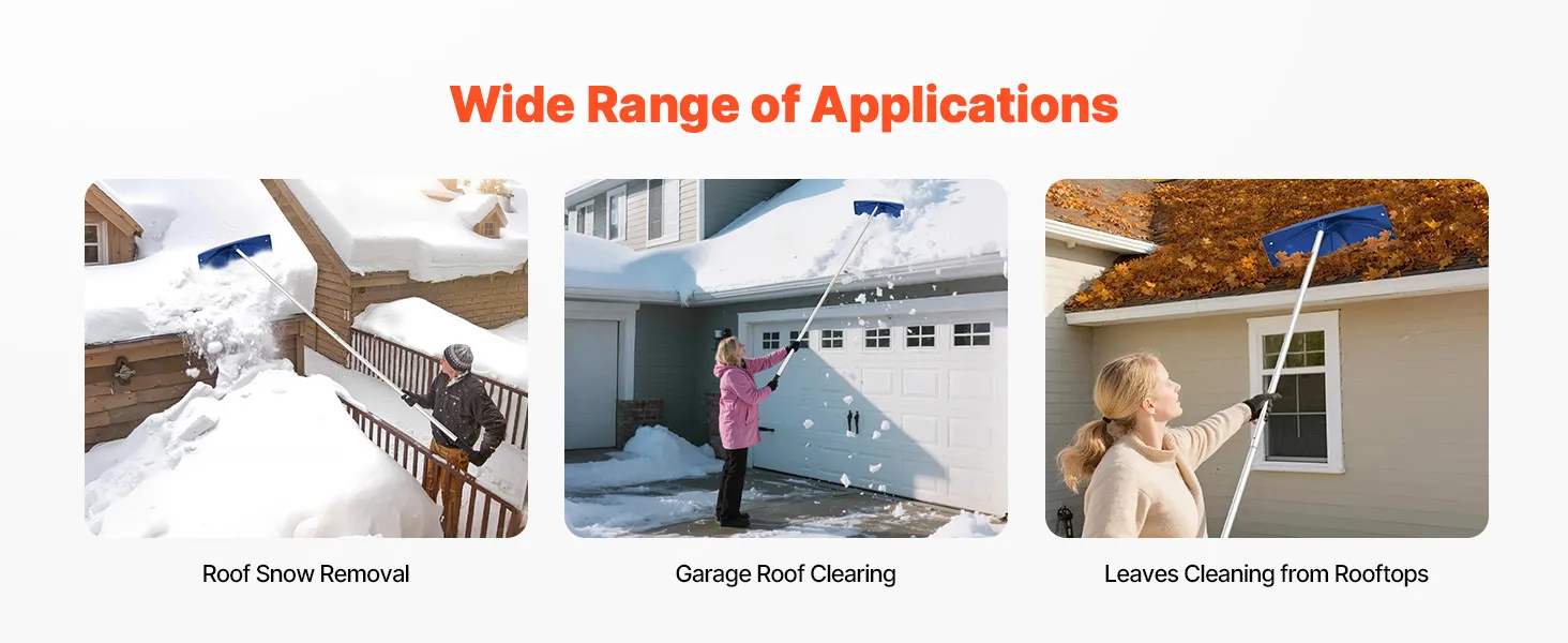 Our roof rake is a multi-purpose tool that handles various scenarios efficiently. Whether it’s snow or fallen leaves on the house, garage roofs, it cleans efficiently, making winter life more hassle-free and relaxed.