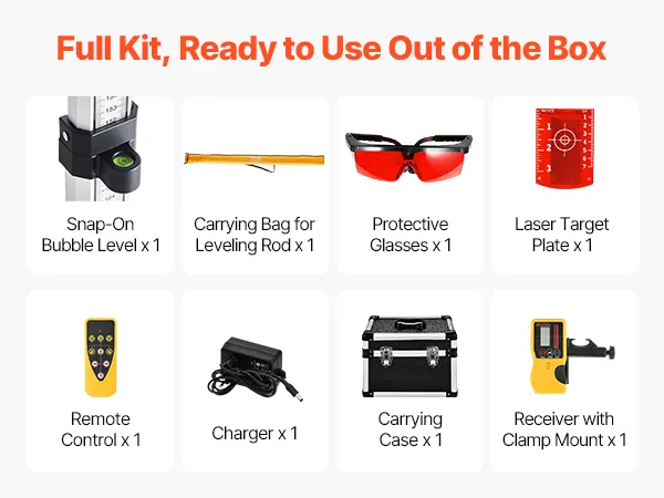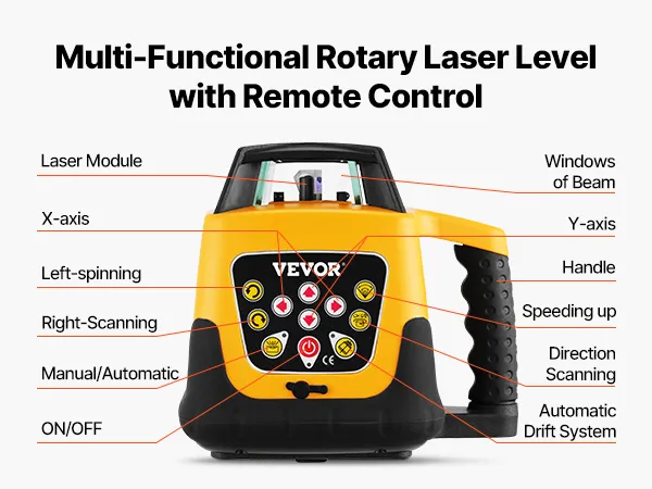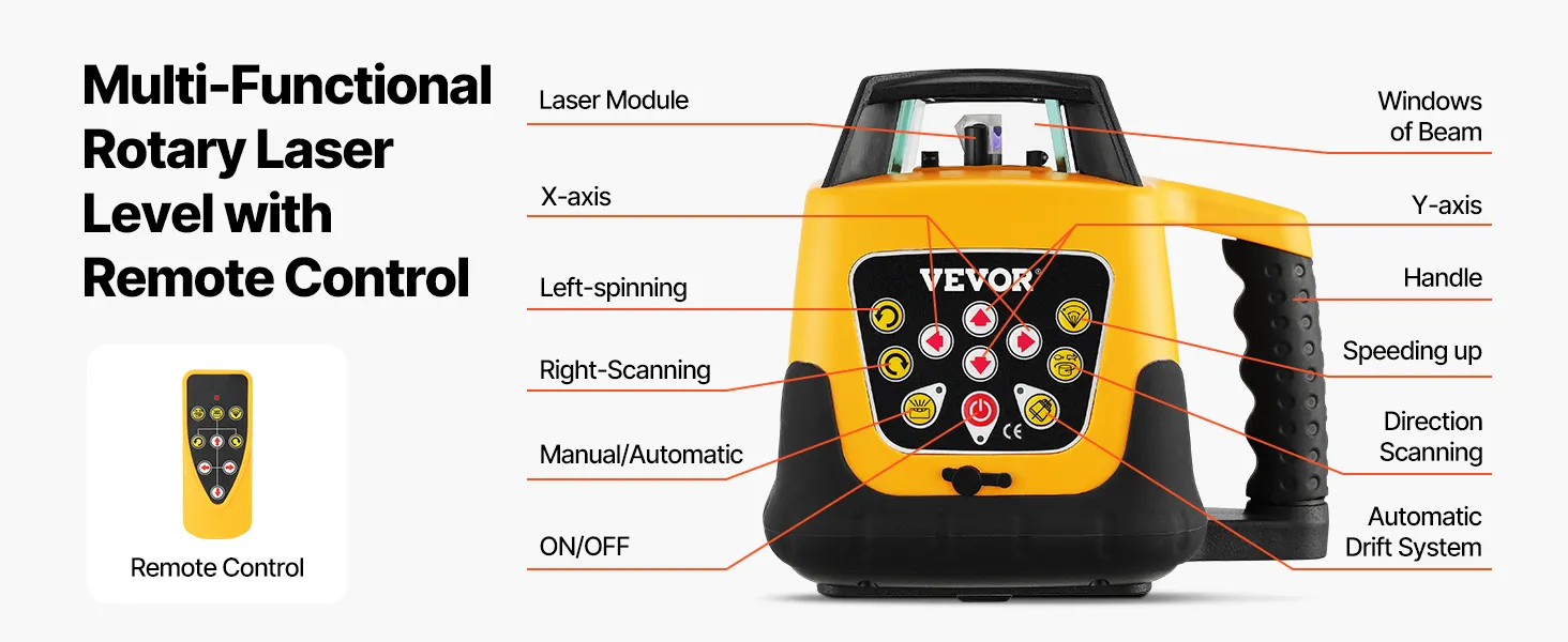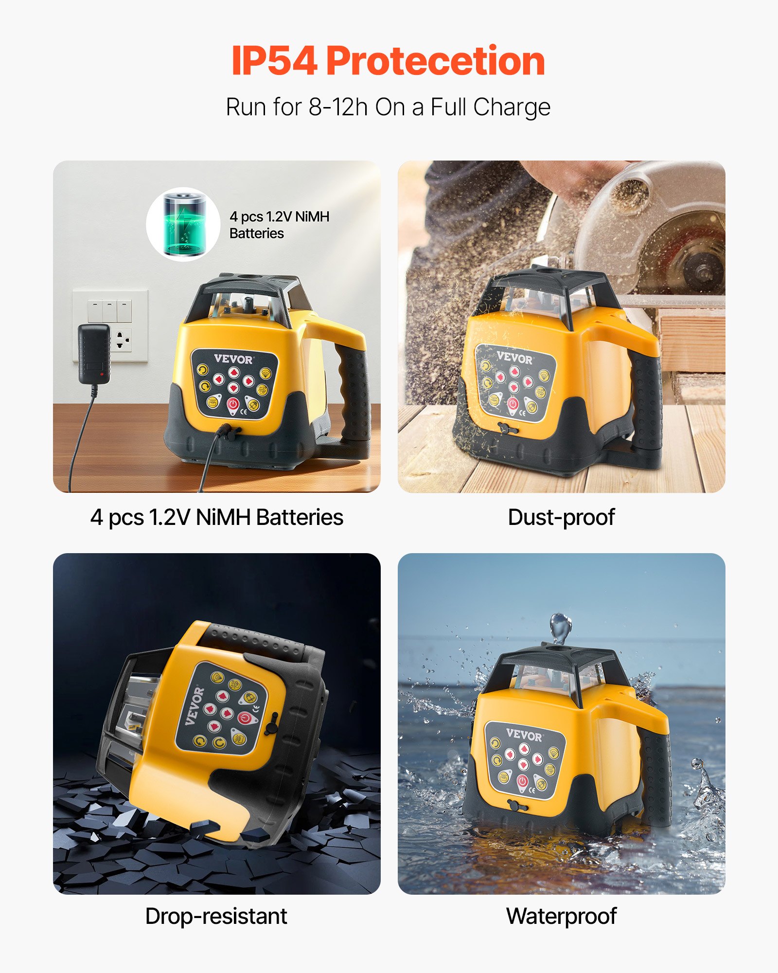• Premium Material: Our user-friendly rotary laser level gives you peace of mind with its IP55 rating. It features a rugged, high-impact composite housing that protects the internal mechanism from water and dust, ensuring long-lasting reliability