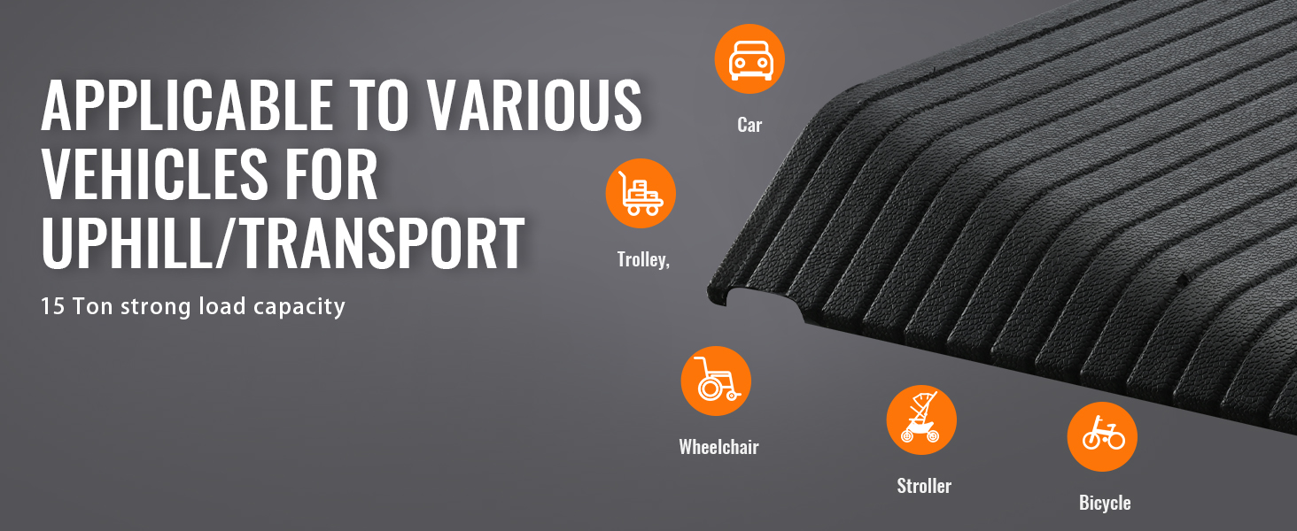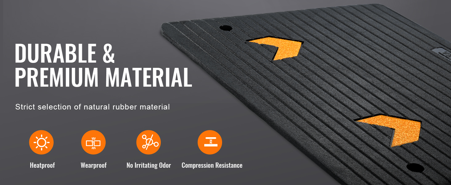 Он изготовлен из высококачественного твердого материала из натурального каучука, который обладает высокой прочностью на сжатие, нелегко деформируется и может перевозить до 15 тонн тяжелых транспортных средств в гору. На ваш выбор есть несколько размеров, подходящих для парковки, подъезда, супермаркета, обочины дороги и других мест.